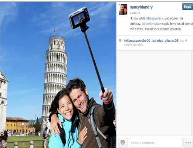 Si tratta di uno stick, l’asta usata da sempre in fotografia per fare foto. A questo oggetto vengono attaccati sopra gli smartphone permettendo così di poter scattare dei selfie dalla distanza. Per chi possiede uno smartphone, sta diventando una moda irresistibile sui social network: in Asia ogni teenager ne possiede uno, e tra Instagram, Twitter e Facebook il tag #selfiestick raccoglie migliaia di scatti.