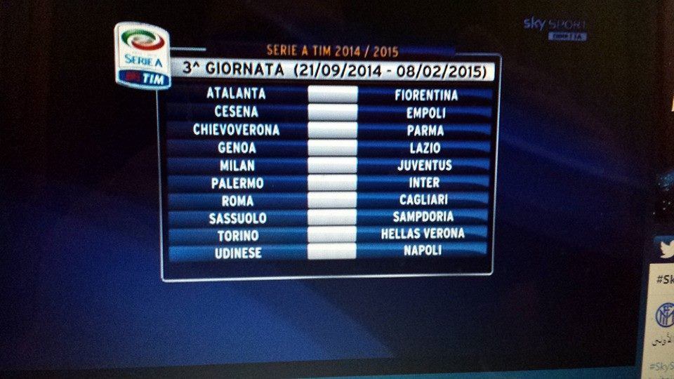 Il calendario della Serie A 2014-2015 con tutte le giornate.