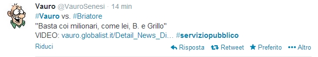 ROMA – Beppe Grillo inserito da Vauro tra i milionari in politica e la rete da Twitter scatena la sua furia. Nella puntata di Servizio Pubblico del 6 febbraio in onda su La7, Vauro ha citato Grillo insieme a Silvio Berlusconi e Flavio Briatore come “ricconi” tra i politici che vorrebbero fare la rivoluzione in Italia.