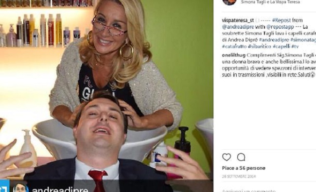 Si chiama La Vispa Teresa, “parrucchiere e centro estetico per tutta la famiglia a Milano, è gestito dalla mamma d’eccezione Simona Tagli”. Così recita il profilo Instagram del negozio, dove appare una foto della Tagli mentre lava i capelli ad Andrea Diprè.