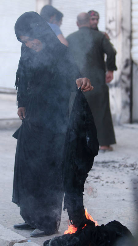 In Molte immagini si vedono gli uomini che si tagliano le barbe lunghe imposte dagli integralisti e le donne che si liberano dei burka neri (le donne per l’Isis devono essere completamente coperte) per poi bruciarli in roghi improvvisati per le strade.