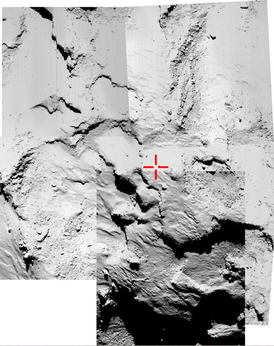 “Il lander Philae potrebbe trovarsi probabilmente sull’orlo di un cratere: è quanto lasciano supporre le prime immagini della cometa, trasmesse da file alla sonda Rosetta e inviate a Terra”.