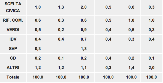 Dietro i democratici, perรฒ, si collocano subito i Cinque Stelle, che agguantano un solido 25,4 per cento. Per i ‘grillini’ l’unico paragone possibile รจ quello con le politiche del 2013, quando alla Camera fu scavalcato il 25% e al Senato ci si avvicinรฒ molto alla soglia del 24. Terza forza politica, secondo le intenzioni sondate, รจ la rinata Forza Italia, che da sola si ferma al 24,3 per cento. Anche unendo Ncd (5,6%) e FdI (1,5%) a Fi, non si supera quota 32. Nel 2009 il Pdl fu incoronato primo partito col 35,3 per cento dei voti. Alle politiche dello scorso anno, invece, alla Camera prese il 21,6% mentre al Senato salรฌ al 22,3 per cento. Lo scorso anno, va ricordato, FdI correva giร per conto proprio con un ‘ritorno’ pari al 2 per cento.