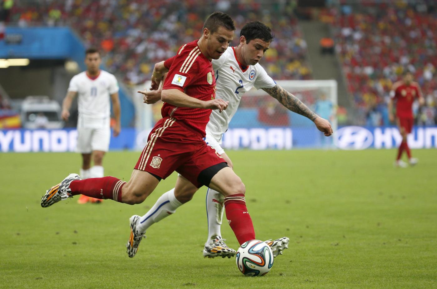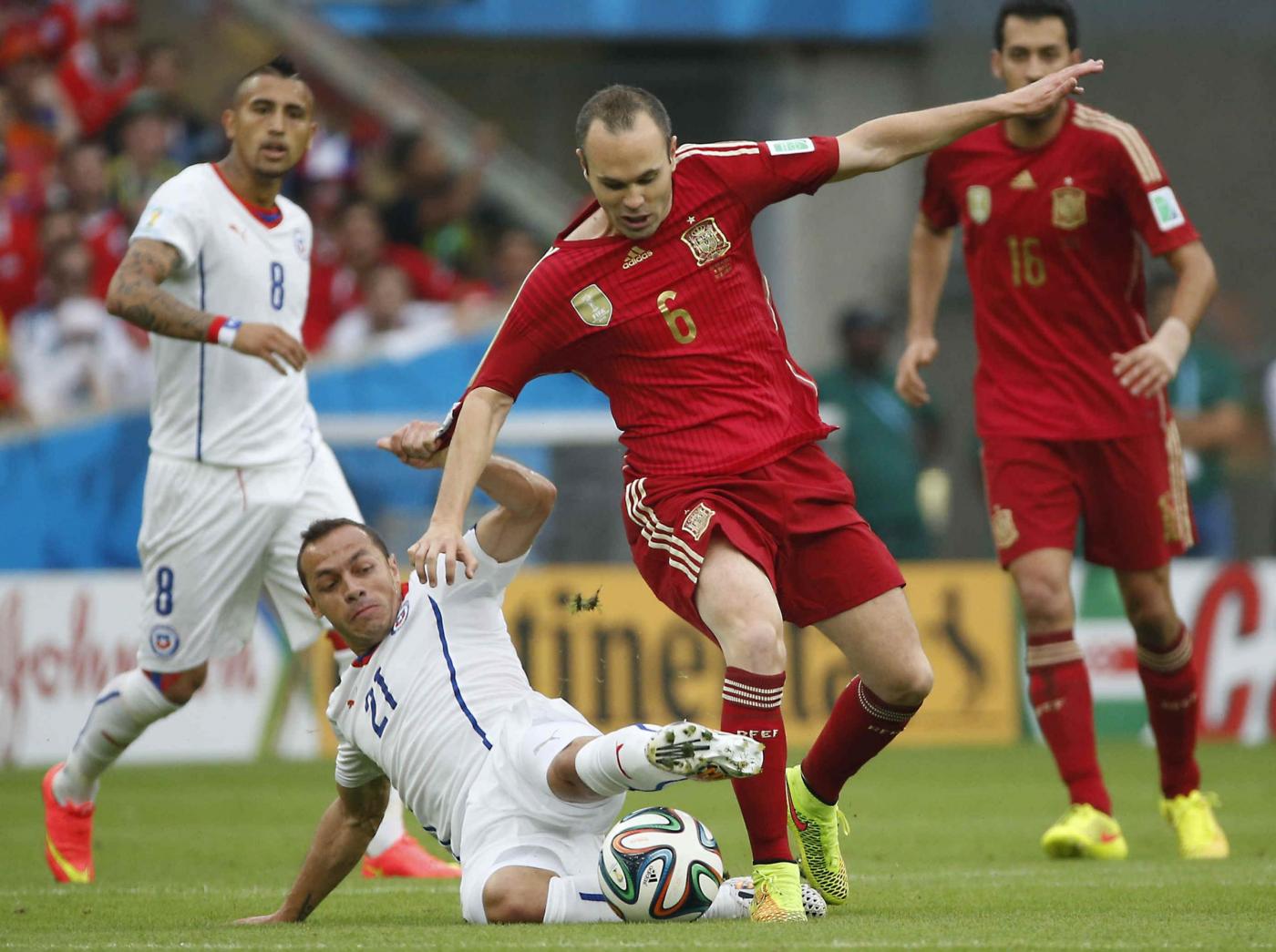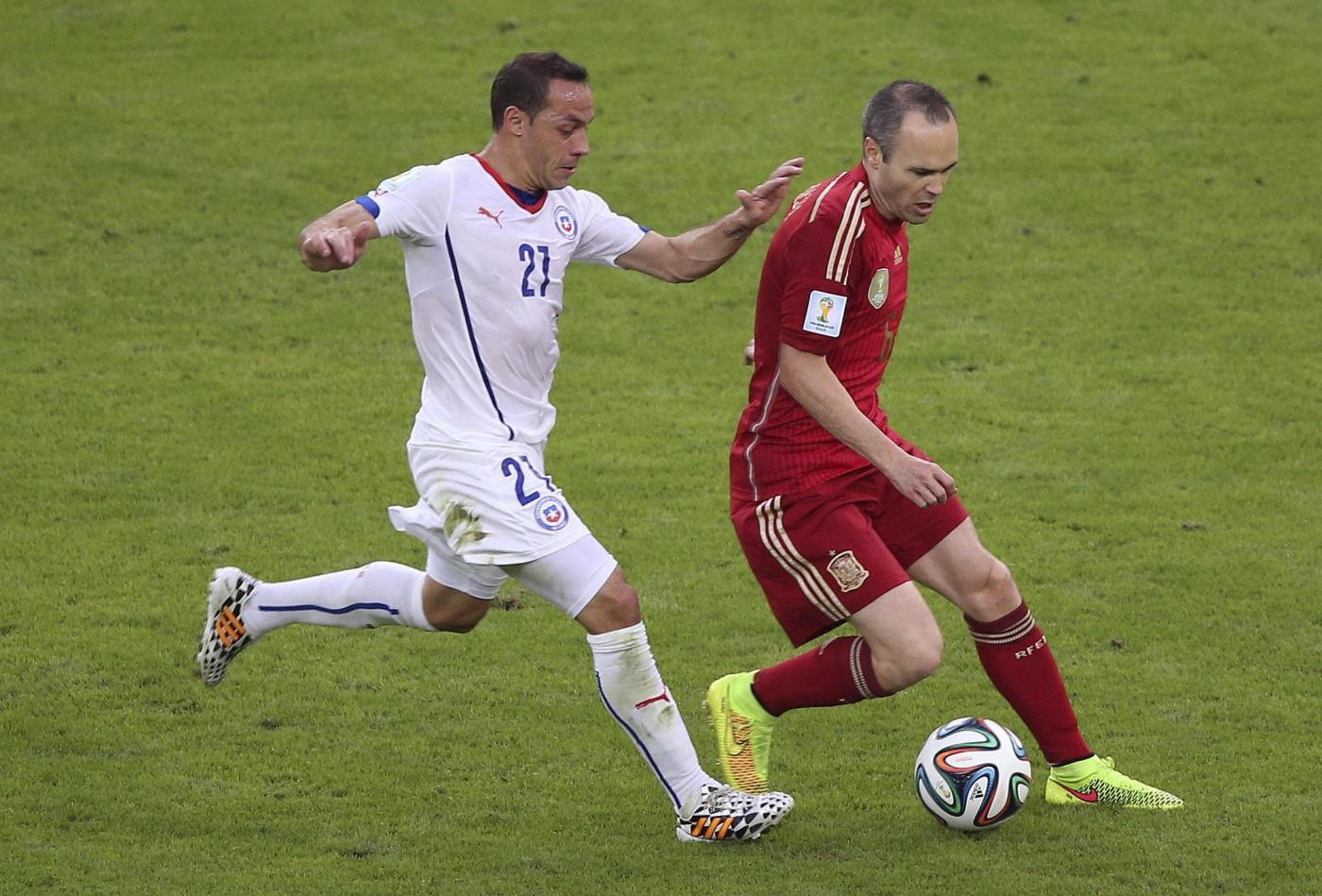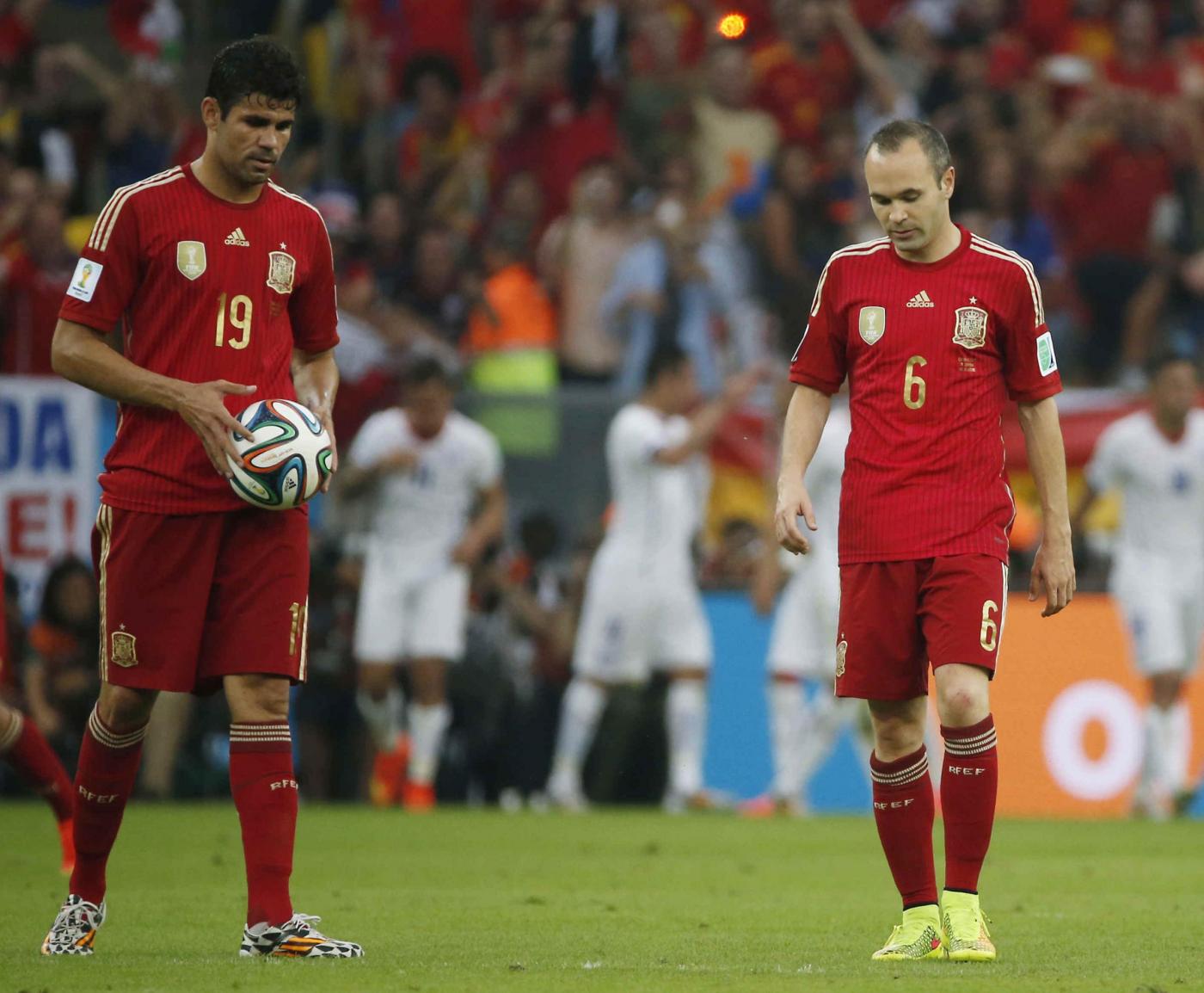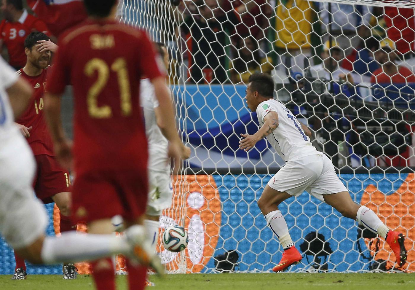 RIO DE JANEIRO, BRASILE – Spagna-Cile 0-2: FOTO, tabellino e pagelle. I gol di Vargas e Aranguiz davanti agli oltre 70 mila spettatori del Maracanà hanno indicato ai campioni del Mondo in carica la strada di casa. Dopo sole due partite, con sette gol presi e solo uno realizzato (peraltro su calcio di rigore), la Spagna batte il record negativo dell’Italia di Lippi, che era stata eliminata dai mondiali 2010 dopo due pareggi e una sconfitta.