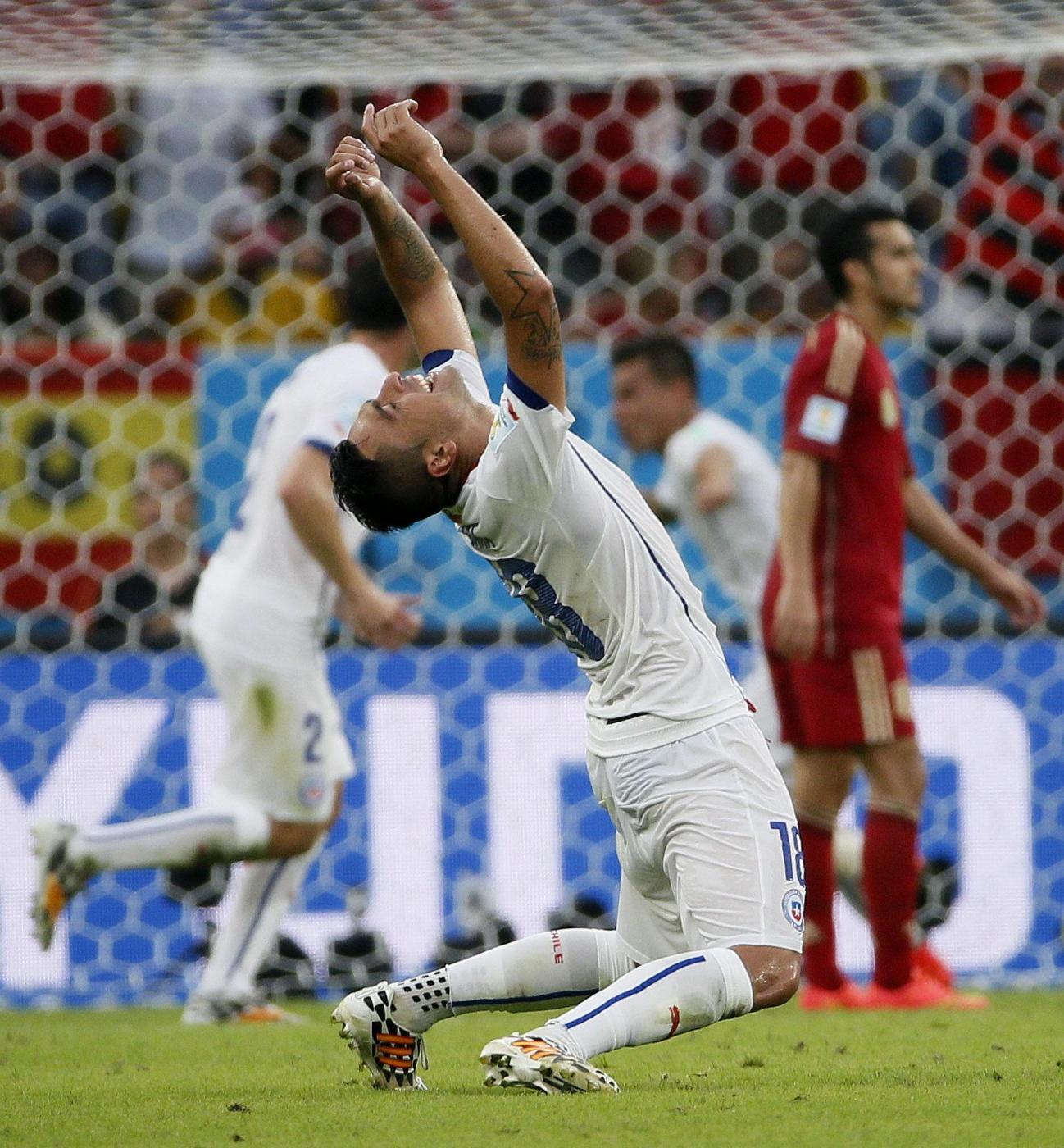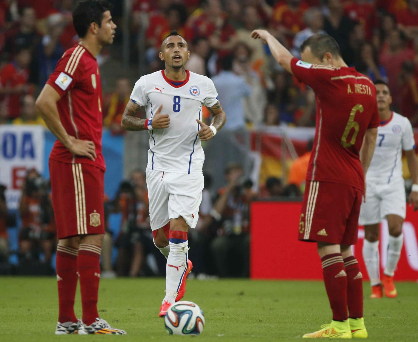 Gli uomini allenati da Vicente del Bosque (qui la cronaca della partita) sono andati subito sotto con il gol di Vargas, hanno avuto una reazione rabbiosa, ma il gol di Aranguiz prima della fine del secondo tempo si è rivelato un macigno. A nulla è servito agli spagnoli uno sterile predominio beffardamente sottolineato dai numeri della partita: il 58% di possesso palla, i 7 calci d’angoli a 1, i 14 tiri a 8 vanificati dalle 8 parate del portiere cileno, Bravo di nome e di fatto.