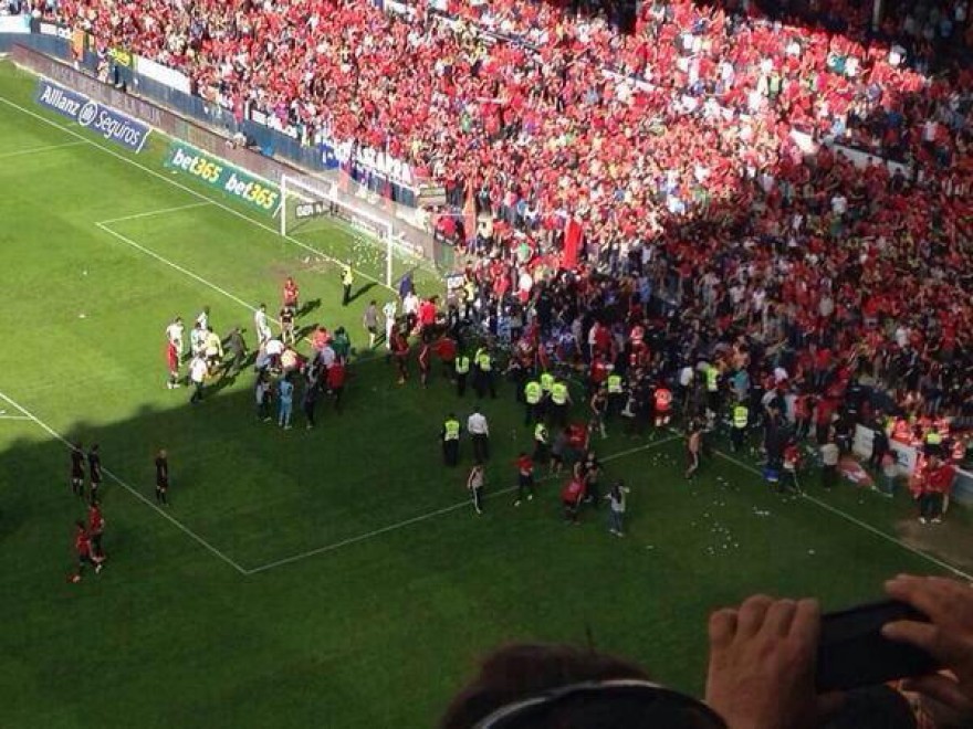 PAMPLONA (SPAGNA) – La pressione provocata dai tifosi che, al 12esimo del primo tempo, esultavano per un gol della loro squadra, l’Osasuna, impegnata in un match decisivo per la salvezza contro il Betis, ha fatto crollare una barriera dello stadio “El Sadar” di Pamplona. La gente è finita in campo, e ci sono stati circa 25 feriti, portati via con delle barelle. Cinque di questi sono stati ricoverati in ospedale: le loro condizioni non sono gravi.