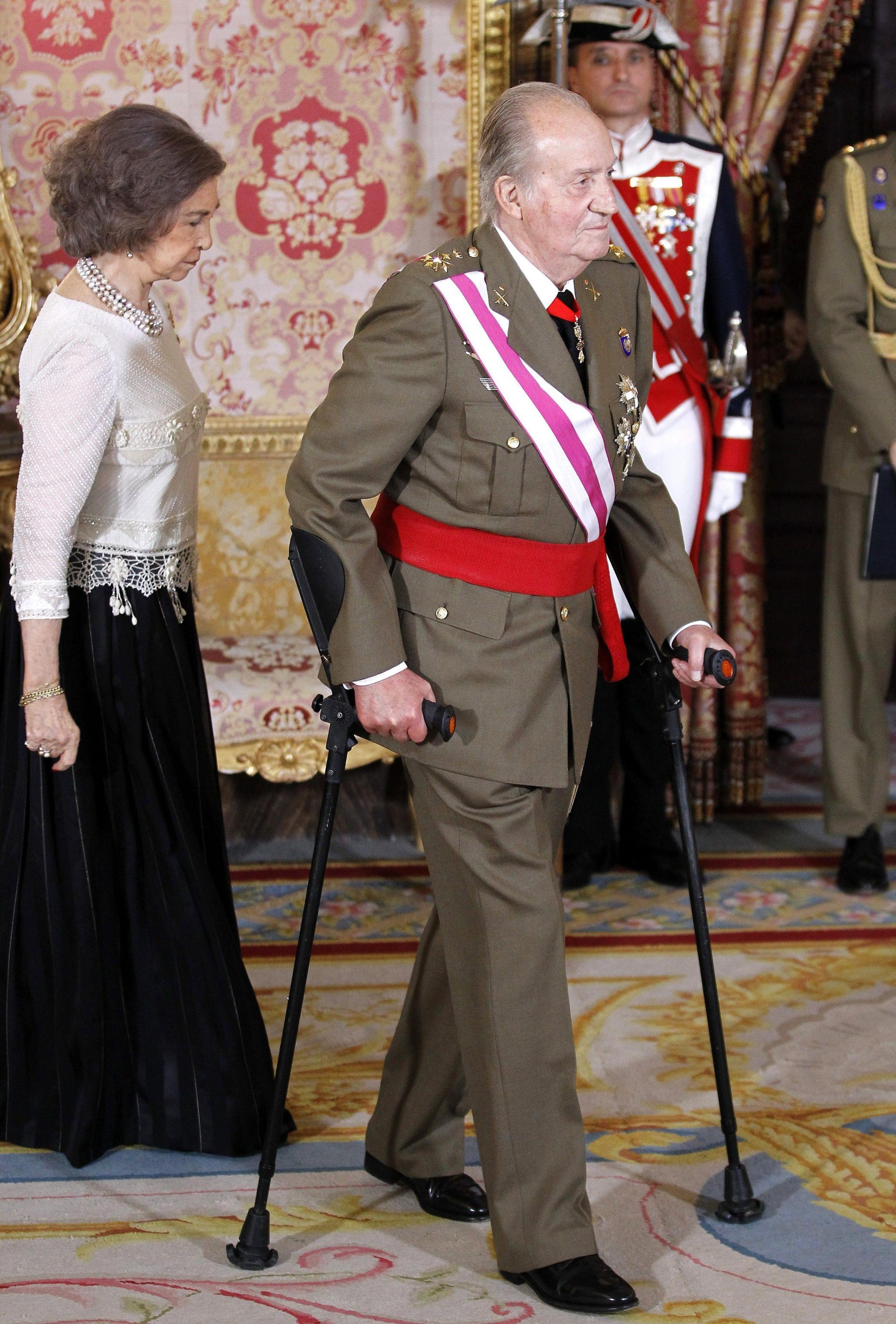 MADRID – Prima apparizione in pubblico con le stampelle per Re Juan Carlos di Spagna dopo la frattura all’anca riportata nel 2012 durante la caccia agli elefanti. Una caduta che comportò non solo la frattura del bacino, ma anche lo scandalo per la contessa Corinna, nobile tedesca e compagna di safari del re spagnolo.