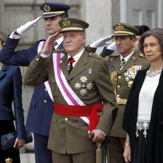 Nel giorno dell’Epifania il re è apparso in stampelle e  alta uniforme militare, accompagnato dalla moglie, regina Sofia, e dal figlio Felipe con la consorte Letizia davanti a Palazzo Reale prima di presenziare a una tradizionale cerimonia militare.