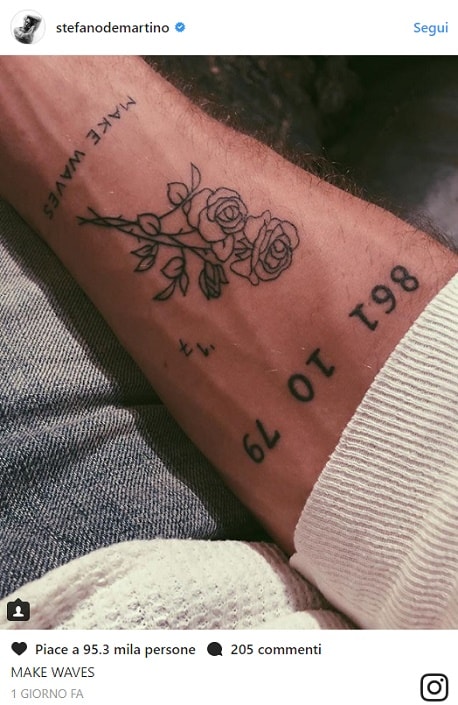 ROMA – Stefano De Martino è in procinto di cominciare l’avventura dell’Isola dei Famosi come inviato speciale in Honduras. L’ex compagno di Belen, mostra su Instagram un tatuaggio e i follower si sono chiesti subito quale fosse il significato. Il tatuaggio raffigura una rosa e dei numeri: le ipotesi sul significato si susseguono e tra i fan ce ne sono due che sembrano prevalere su tutte.