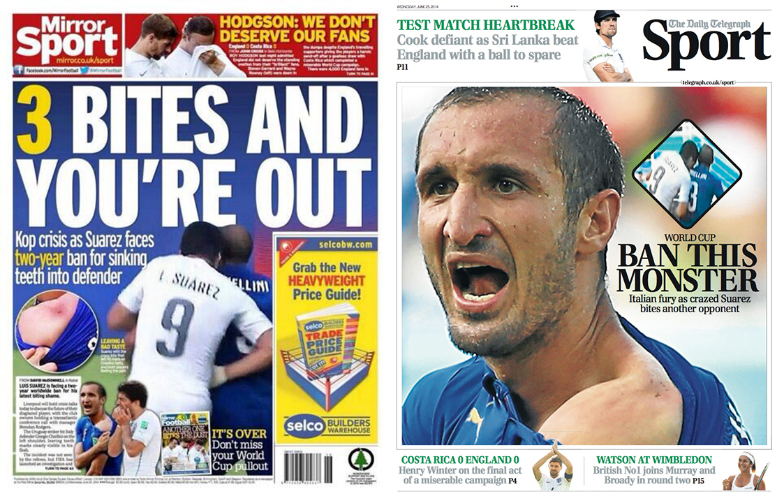 Il quotidiano inglese Mirror, oltre ad aprire sul morso di Suarez, sottolinea come il Liverpool, in particolare, risulterebbe danneggiato da una lunga squalifica del suo bomber. E non solo per quanto riguarda il campo, ma anche per le conseguenze sul mercato in caso di uno stop prolungato.