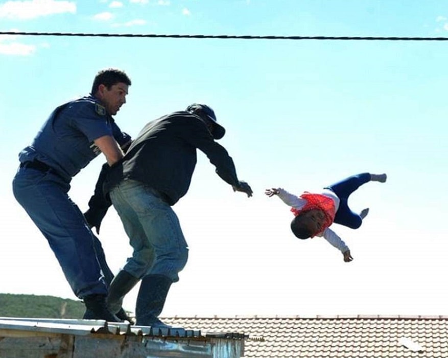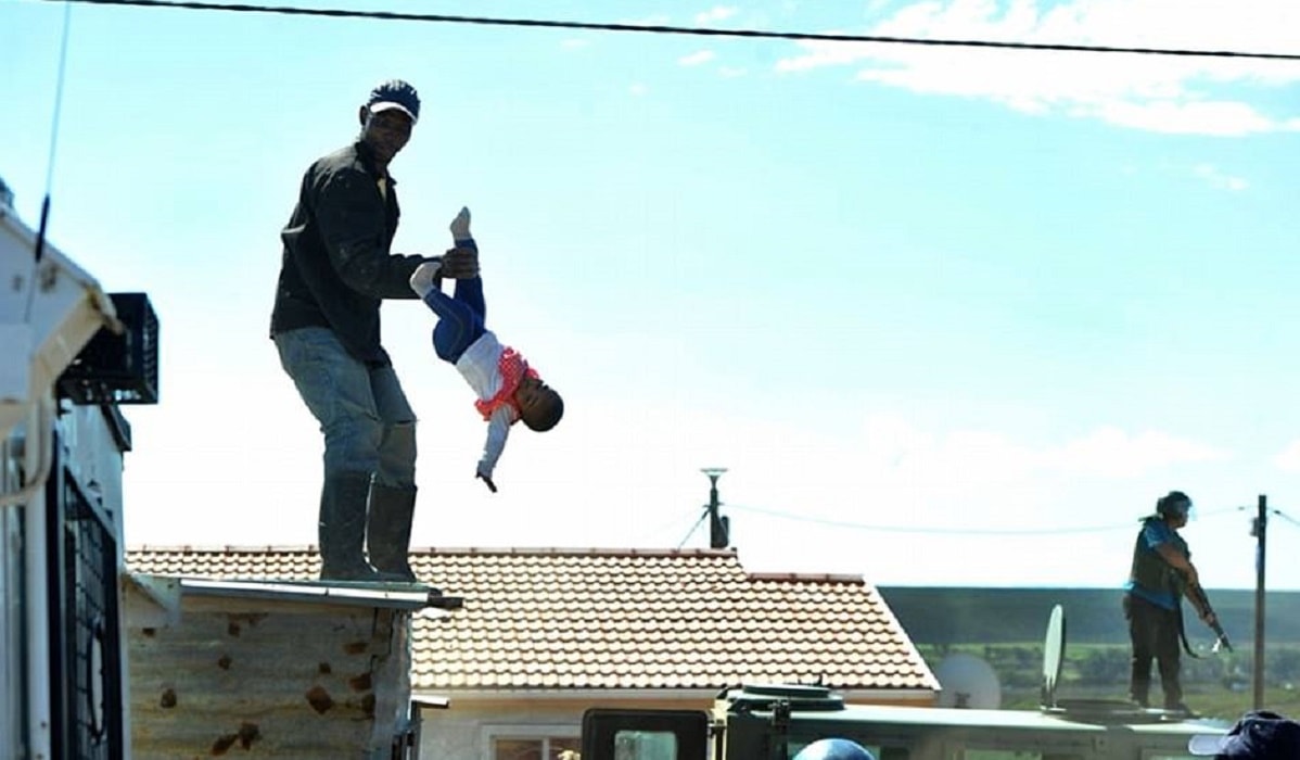 Il gesto estremo, come racconta il Daily Mail che pubblica delle immagini apparse su Facebook, viene compiuto da questo 38enne per provare ad impedire la demolizione della sua baracca e delle altre che sorgono in un quartiere abusivo di Kwadwesi, vicino Port Elizabeth. Davanti alla casa stazionano per tutto il tempo circa 12 agenti. Uno di loro sale sul tetto per provare a convincere il padre a non commettere il gesto estremo. Nel frattempo l’uomo continua a tenere per la caviglia la piccola di sei mesi dondolandola dall’alto.