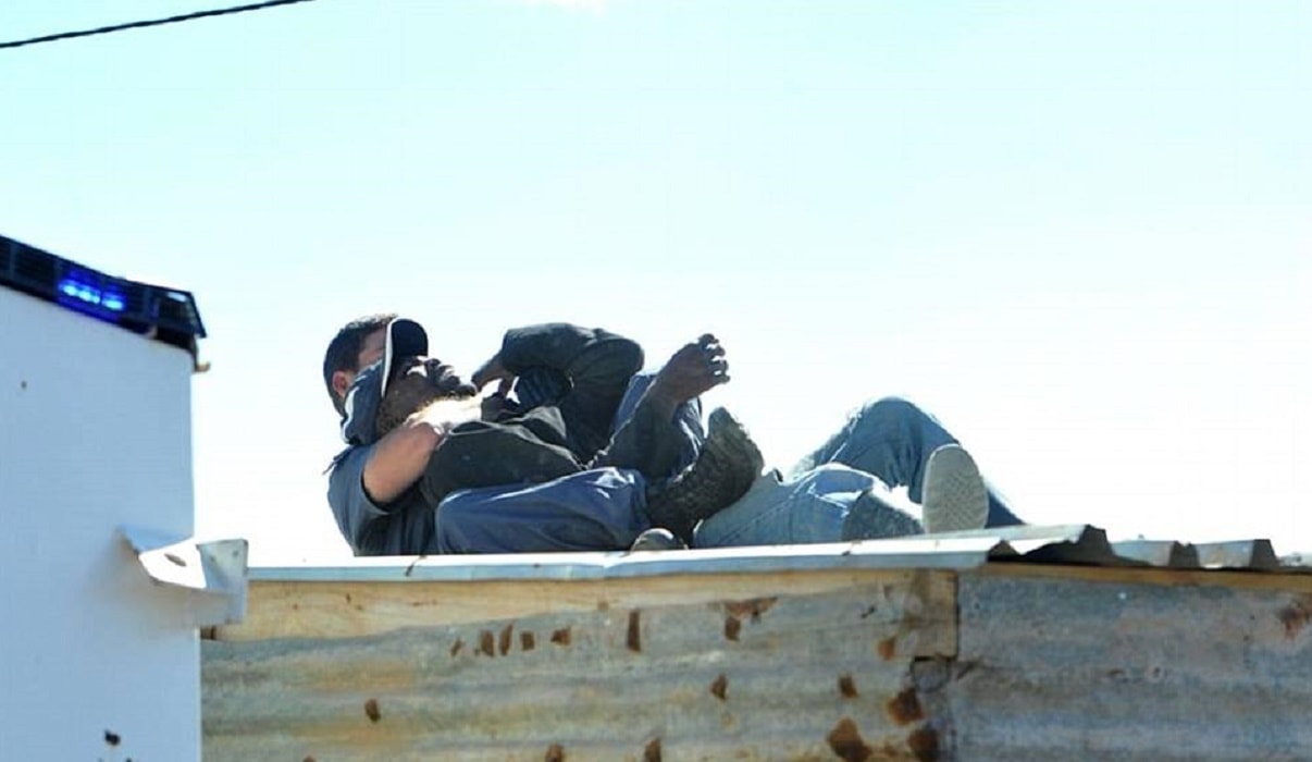 Gli altri abitanti della baraccopoli, circa 150, incitano per tutto il tempo l’agitato padre cantando “lancia, lancia, lancia”. Alla fine la piccola viene lanciata di sotto in accordo con la polizia che nel frattempo si è organizzata impedendo che la piccola si faccia male. Il padre viene intanto immobilizzato dopo il lancio della figlia ed arrestato con l’accusa di tentato omicidio.