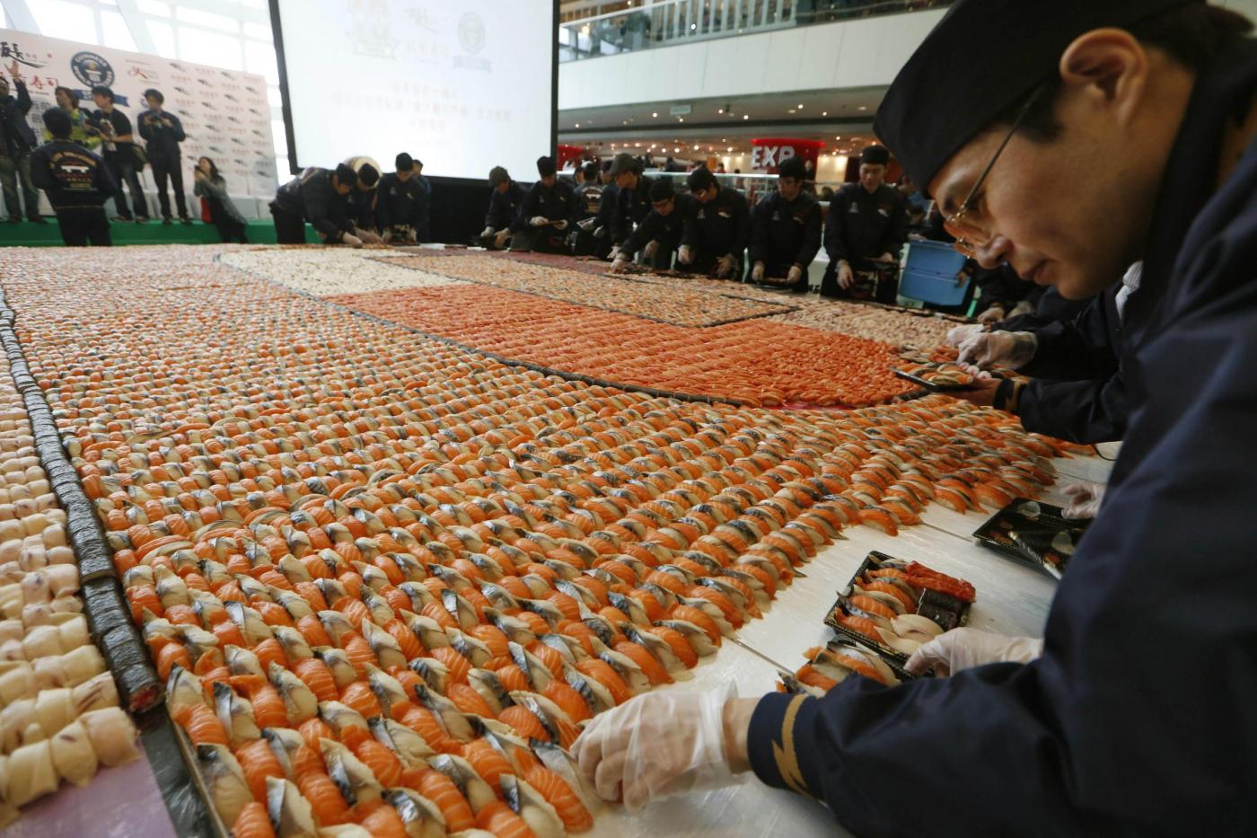 HONG KONG – Più di 100 chef si sono ritrovati ad Hong Kong per fare un sushi da Guinness realizzato con 20647 “bocconcini” di pesce.