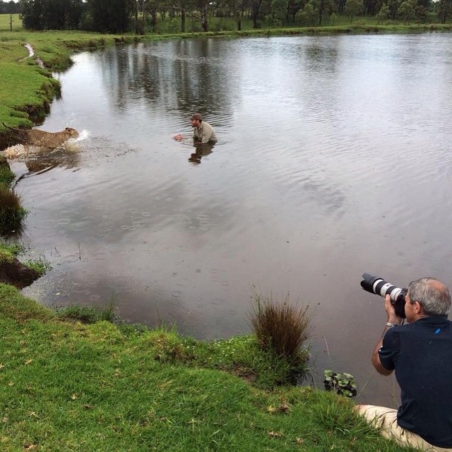 SYDNEY – Ben Britton è uno dei guardiani del parco naturale Wild Animal Encounters di Sydney in Australia. Oltre a guardiano, Ben è specializzato nell’insegnamento del nuoto ai piccoli leoni. In alcune foto pubblicate su Facebook sull’account del parco naturale, si vede l’ultima sfida a cui Britton sta partecipando: insegnare a un cucciolo di leone di otto mesi a nuotare. Il piccolo felino si chiama Mal ed ha paura dell’acqua. Pur essendo nato in cattività, è stato abbandonato dalla madre e così Ben è diventato per lui qualcosa che assomiglia ad un papà adottivo. Il leoncino ha paura di buttarsi in acqua ed ora, grazie agli sforzi del guardiano, sta prendendo coraggio.
