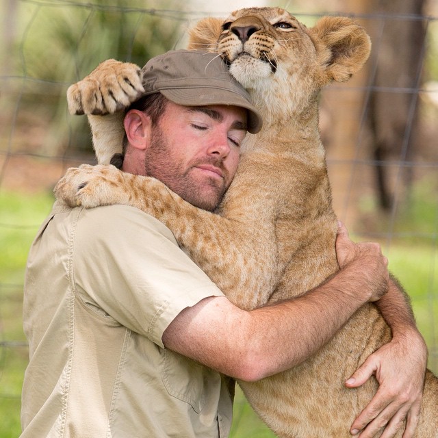 Il cucciolo segue ovunque il suo padre adottivo. Ben, dal canto suo, nonostante si tratti di un leone e quindi di un animale feroce, non ha affatto paura di abbracciarlo.