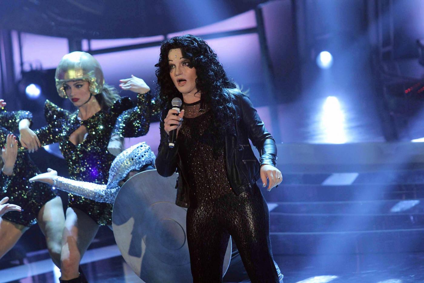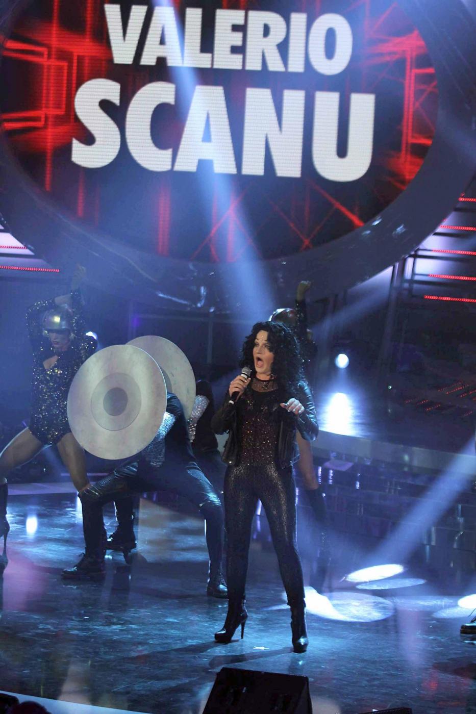 ROMA – Parrucca nera, giacca di pelle, trasparenze, tacco 12 e tutina attillata. Valerio Scanu ha stupito i concorrenti di “Tale e Quale Show”, il programma condotto il venerdì sera da Paolo Conti su Rai Uno, con un riuscitissimo travestimento che lo ha trasformato nella cantante Cher. Pur non riuscendo ad arrivare alla prima posizione in classifica, raggiunta questa volta da Rita Forte con la sua impeccabile imitazione di Dionne Warwick, Scanu si conferma il trasformista più capace fra tutti i concorrenti.