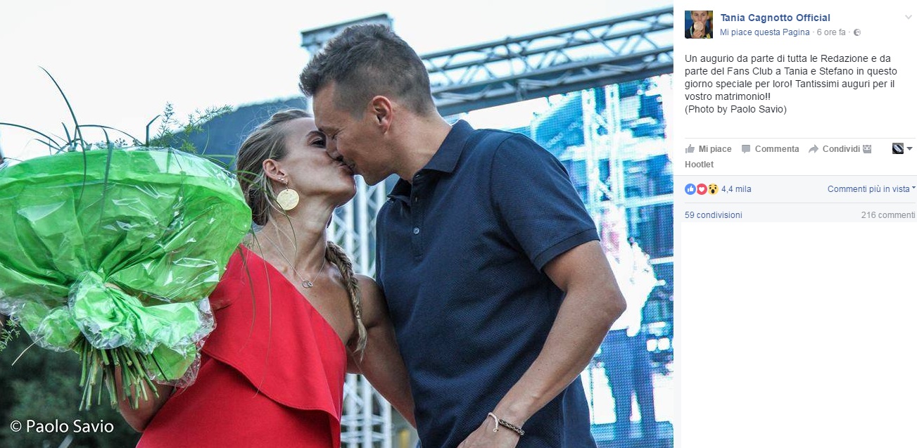 PORTOFERRAIO -Tania Cagnotto ed il fidanzato Stefano Parolin hanno detto finalmente sì. Il fatidico giorno delle nozze, per la 31enne campionessa di tuffi che ha chiuso la sua carriera agonistica alle Olimpiadi di Rio de Janeiro conquistando una medaglia d’argento ed una di bronzo, è arrivato. La sua dolce metà è Stefano Parolin, il 33enne commercialista con la passione per la vela. La coppia si è giurata amore eterno la mattina di oggi 24 settembre nella chiesetta della Madonna dell’Uva, all’interno del complesso dell’hotel Hermitage, il cinque stelle che si affaccia sul golfo della Biodola sull’Isola d’Elba.