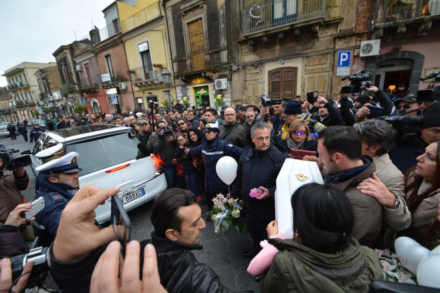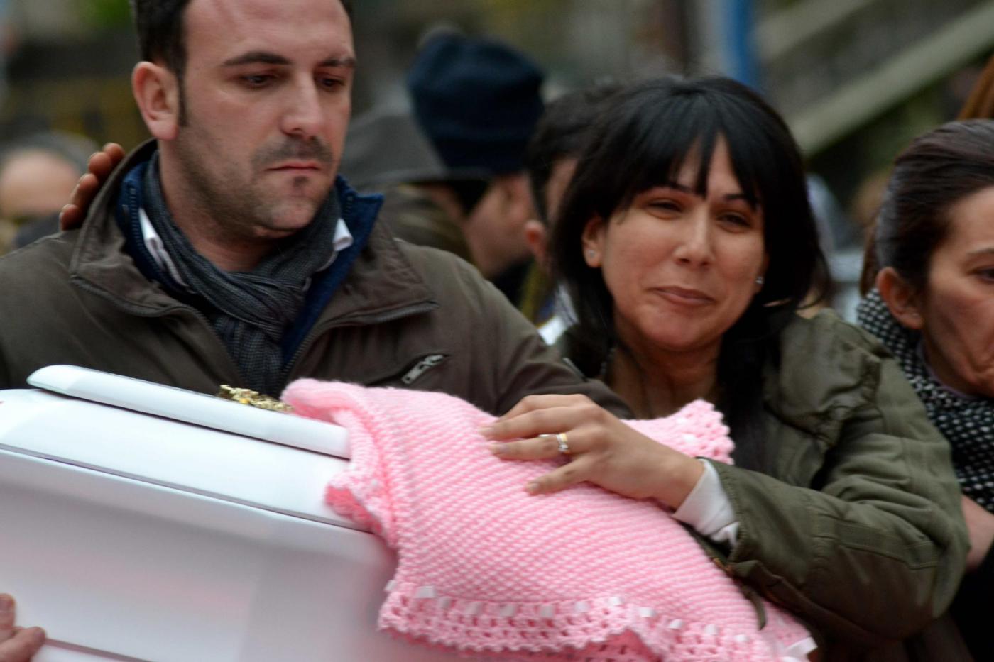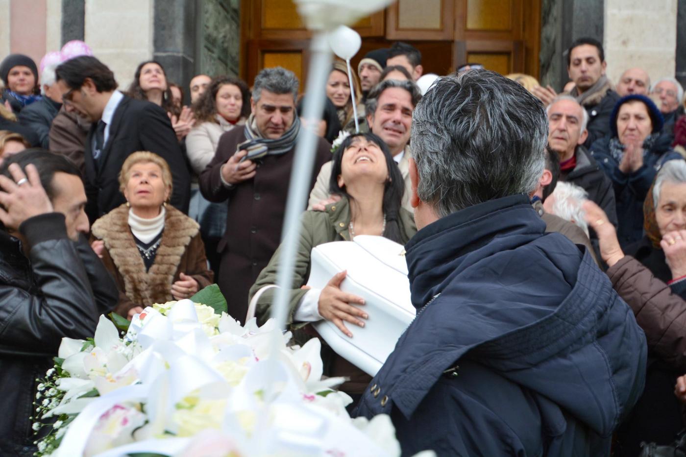 MASCALUCIA (CATANIA) – La piccola bara bianca in braccio e poi sulle ginocchia: Tania Laura Egitto non è riuscita a staccarsi da quel che resta della sua piccola Nicole. Ai funerali della neonata il piccolo feretro è rimasto lì, vicino a lei, davanti all’altare della chiesa di San Vito Martire a Mascalucia (Catania).