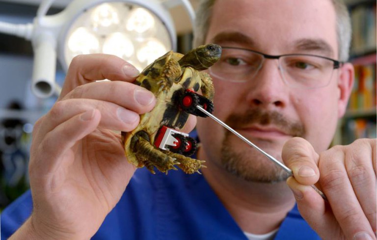 Una tartaruga che vive in Germania è stata portata dal veterinario per le sue difficoltà motorie. Carsten Plischke, il veterinario che l’ha visitata, ha deciso di impiantarle provvisoriamente alcune ruote Lego che ha preso dalla collezione di suo figlio.