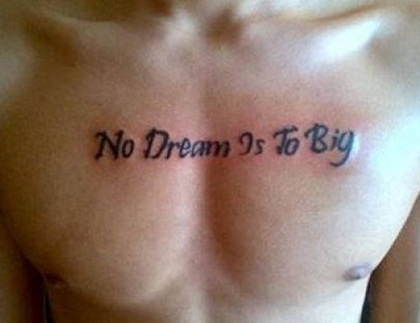 No dream is to big”, dovrebbe essere “No dream is too big” , ossia ossia “Nessun sogno è troppo grande”