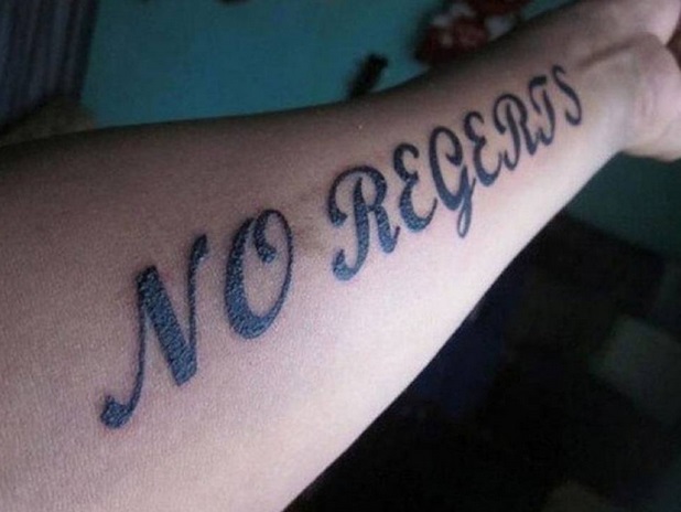No regerts” dovrebbe essere No regrets, “Nessun rimpianto”
