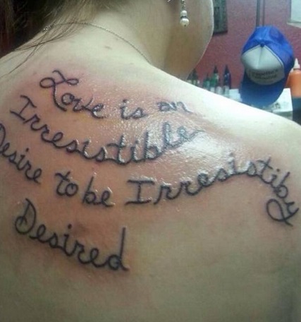 Love is an irresistible desire to be irresistiby desired, “l’amore è un desiderio irresisitibile di essere irresistibilmente desiderati”, si sono dimenticati la “l” in “irresistibly”