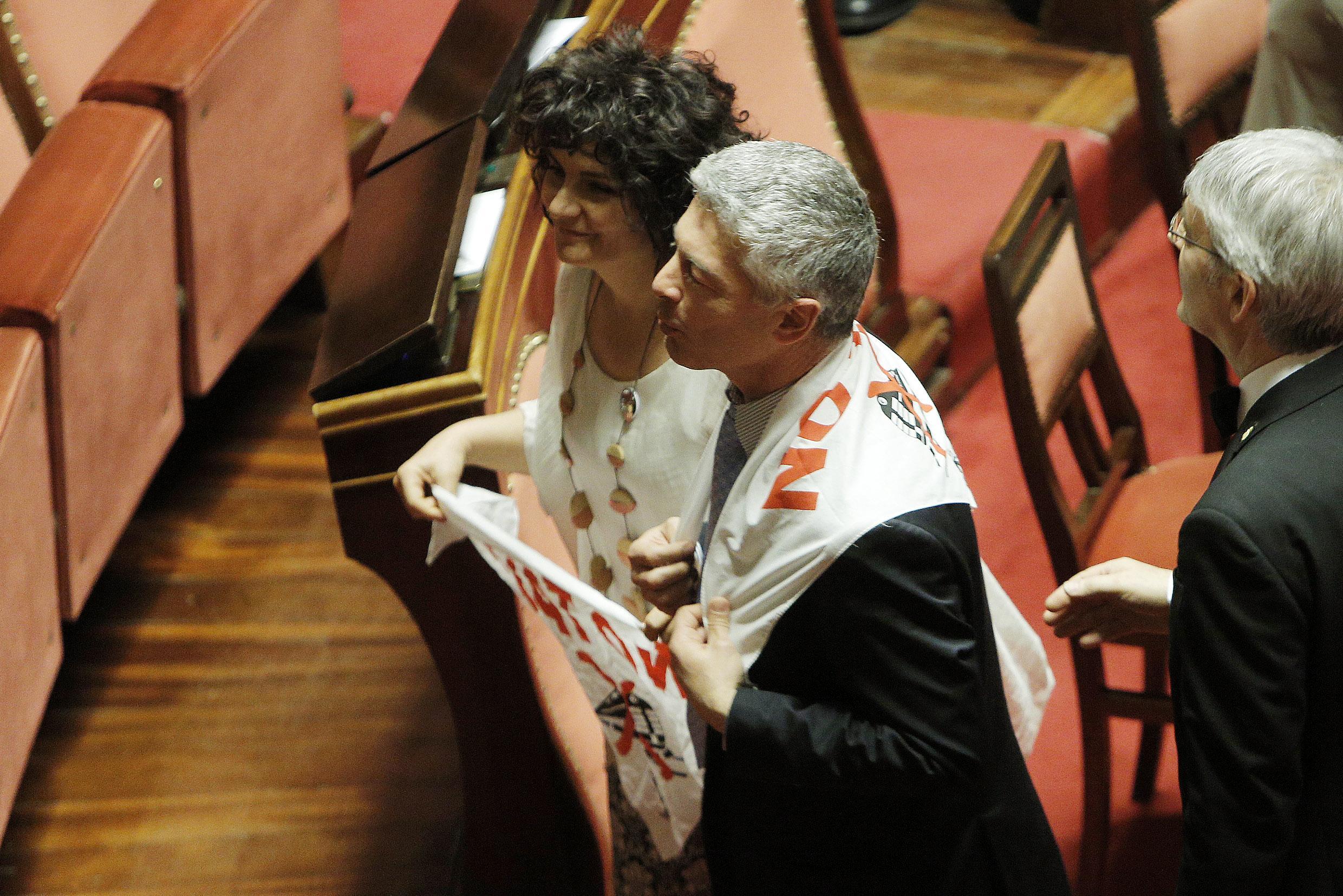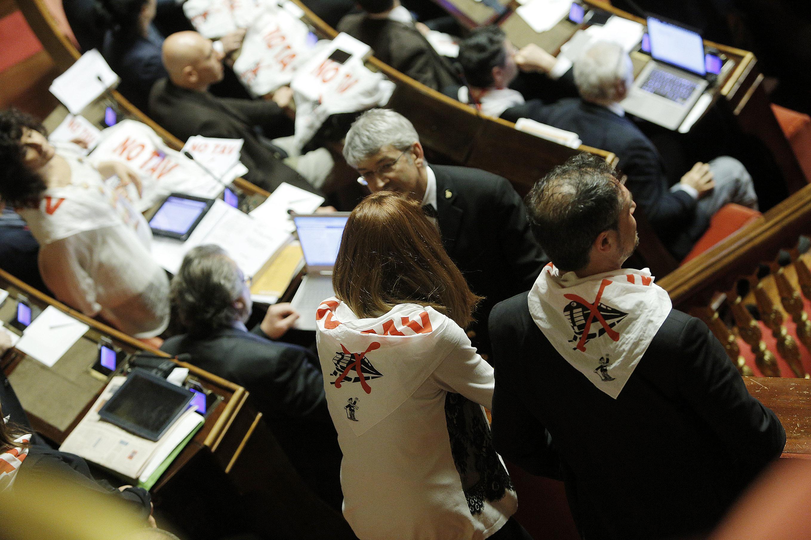 Ma è durante le dichiarazioni di voto che il clima diventa incandescente. Gli M5S, con le sciarpette “No Tav” al collo urlano e protestano quando gli altri cercano di parlare e gli altri reagiscono con urla e proteste altrettanto forti. La situazione è spesso ingestibile tanto che la presidente di turno Linda Lanzillotta alla fine è costretta a sospendere la seduta per una decina di minuti nel tentativo di riportare l’ordine nell’emiciclo.