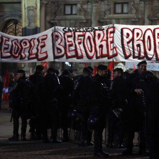 Sul palco reale, accanto al sindaco Beppe Sala e al governatore lombardo Roberto Maroni, quattro abitanti delle zone colpite dal terremoto degli ultimi mesi. Fuori dal teatro le manifestazioni dei centri sociali. Qualche fumogeno, lancio di ortaggi e lo striscione “Bella ciaone. E adesso cacciamoli tutti”, sistemato dai militanti del Cantiere che hanno preso in giro il dimissionario presidente del consiglio Renzi anche con maschere montate su alcuni manichini. Tra i manifestanti rappresentanti dei Cub (Confederazione unitaria di base) e pochi altri militanti del mondo antagonista milanese.