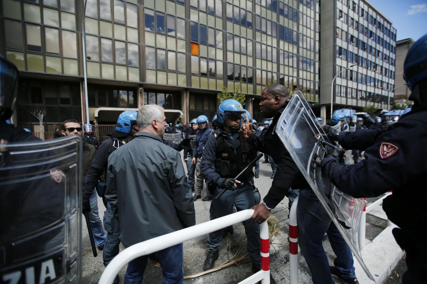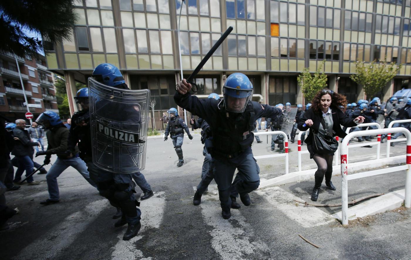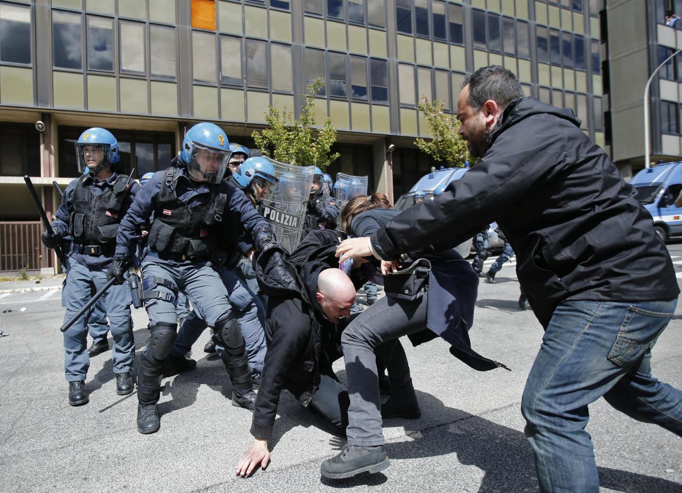 ROMA – Scontri tra polizia e manifestanti durante lo sgombero di una palazzina di proprietà dell’Inps alla Montagnola, a Roma. Nelle immagini, nei primi filmati pubblicati si vedono alcuni agenti mentre colpiscono uno dei manifestanti steso a terra.