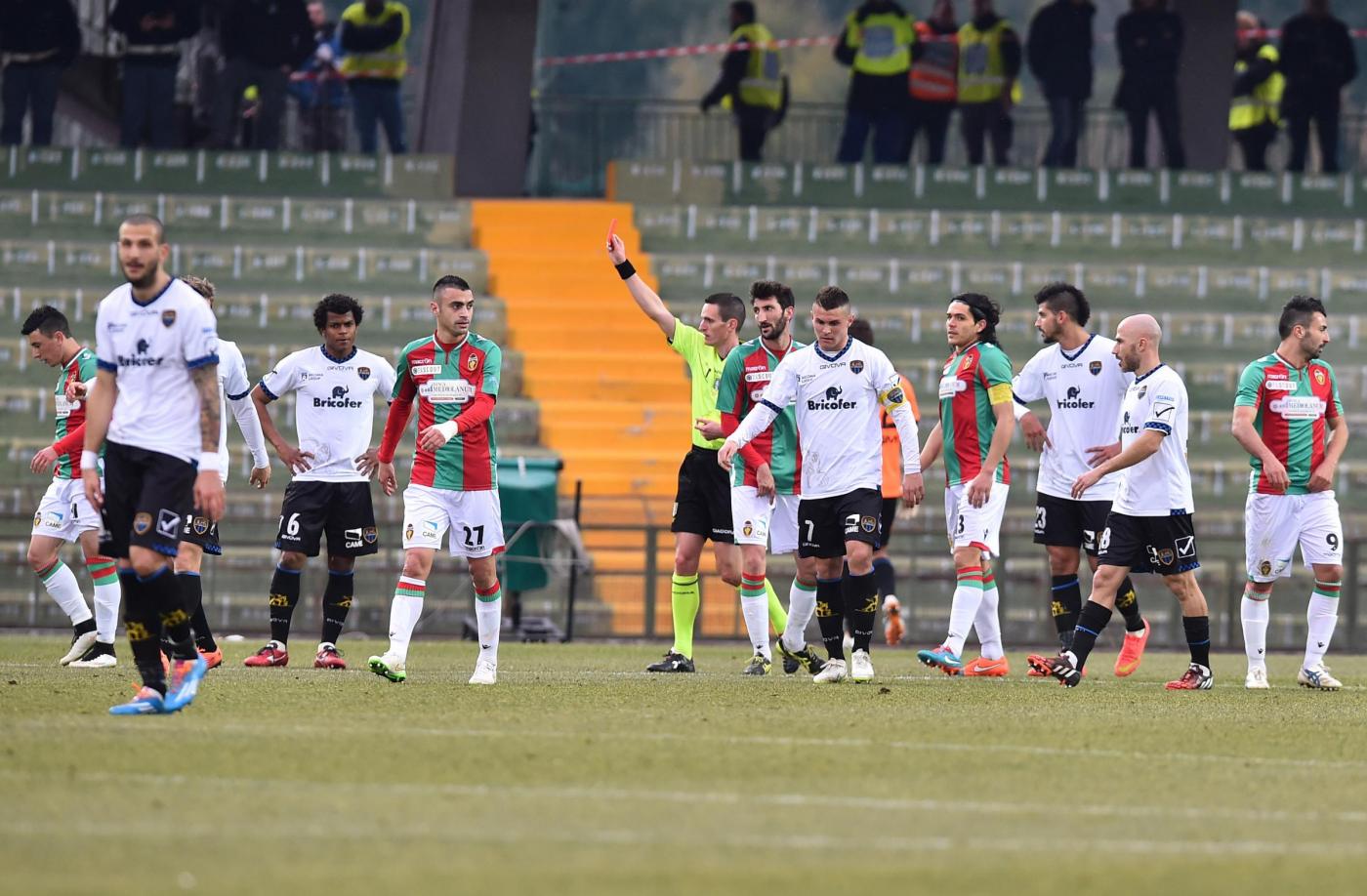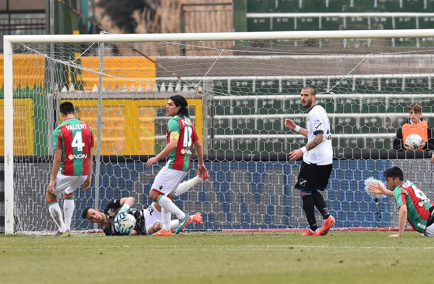 ROMA – Latina batte Ternana 2-0. Al 12′ il vantaggio degli ospiti: Alhassan sfugge a Crecco al limite dell’area di rigore e tira verso la porta di Brignoli che resta inspiegabilmente fermo. Nel secondo tempo, dal 10′ al 18′, cartellini gialli per gli umbri Falletti, Vitale e Gavazzi. Poi al 18′ arriva il secondo giallo, con conseguente espulsione, per Falletti per una simulazione al limite dell’area di rigore, decisione contestata dai padroni di casa.