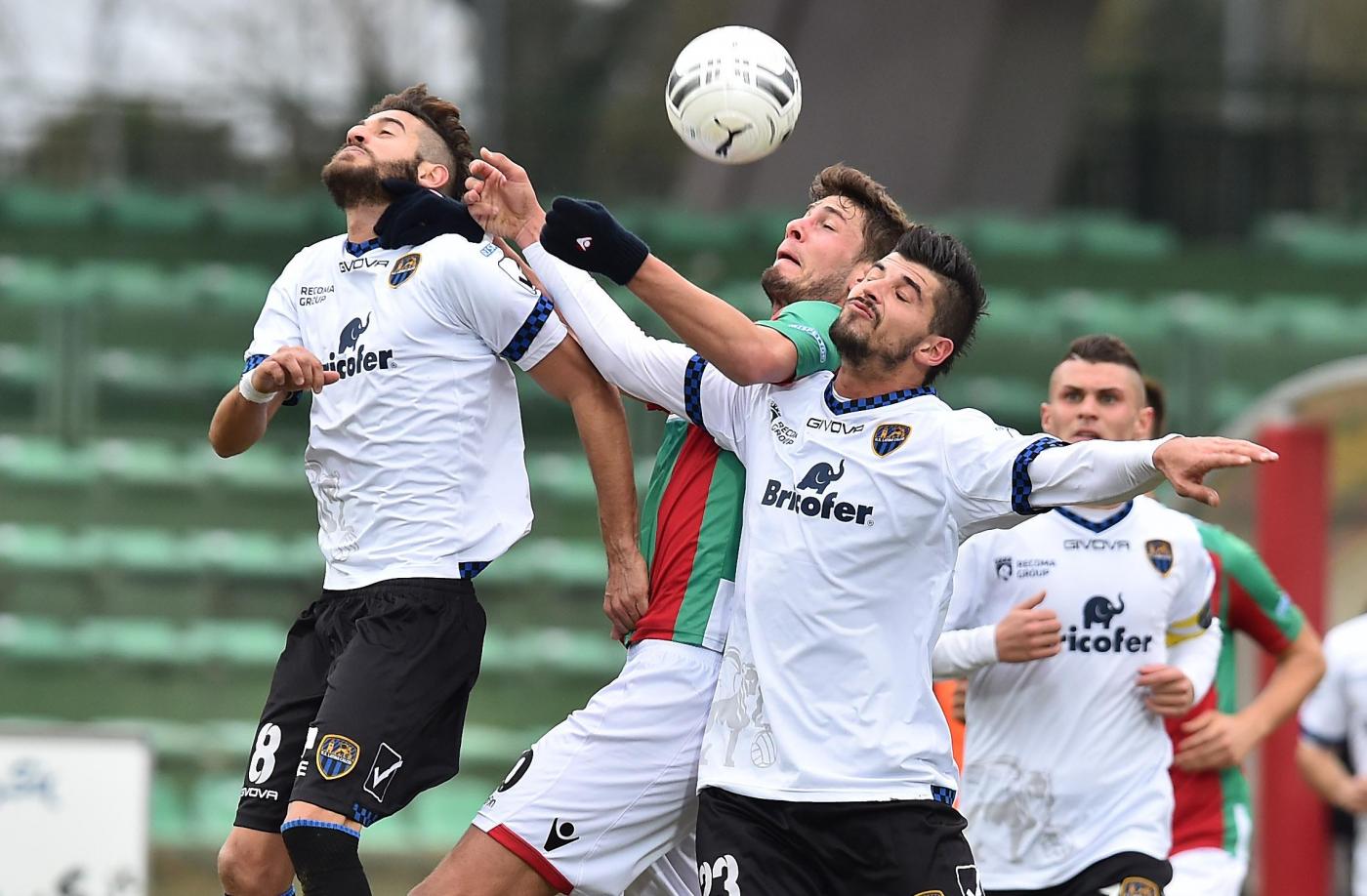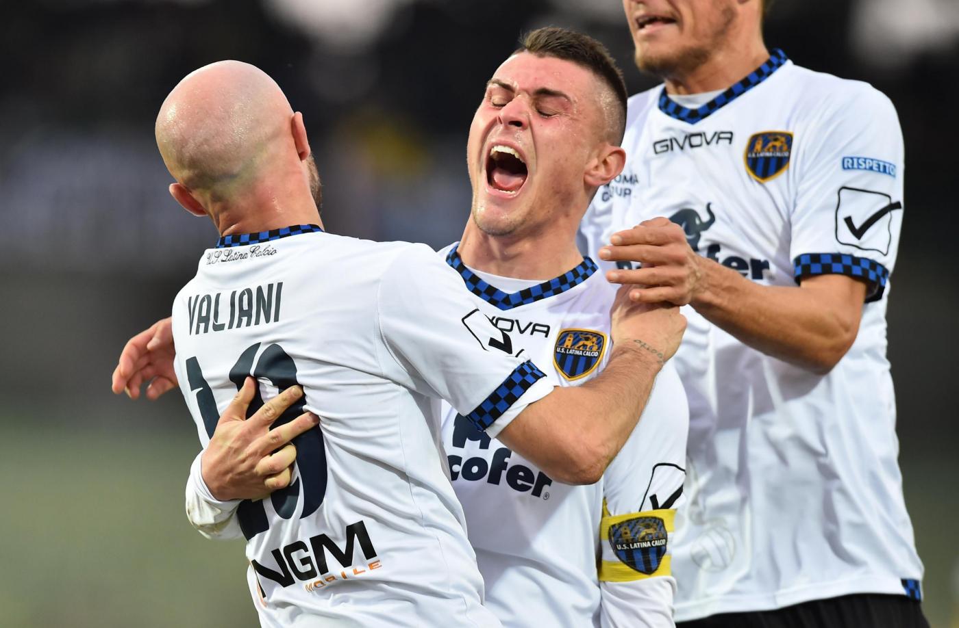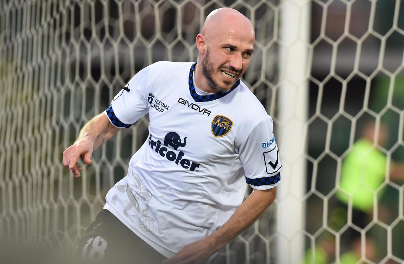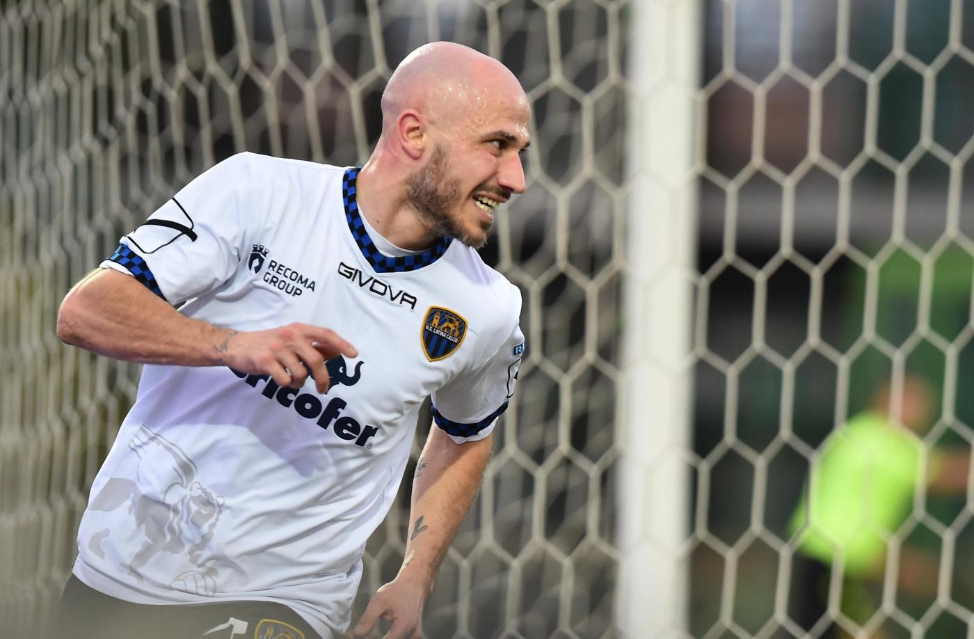 Al 41′ il raddoppio del Latina con Valiani, libero di tirare in piena area completamente indisturbato. Foto LaPresse.
