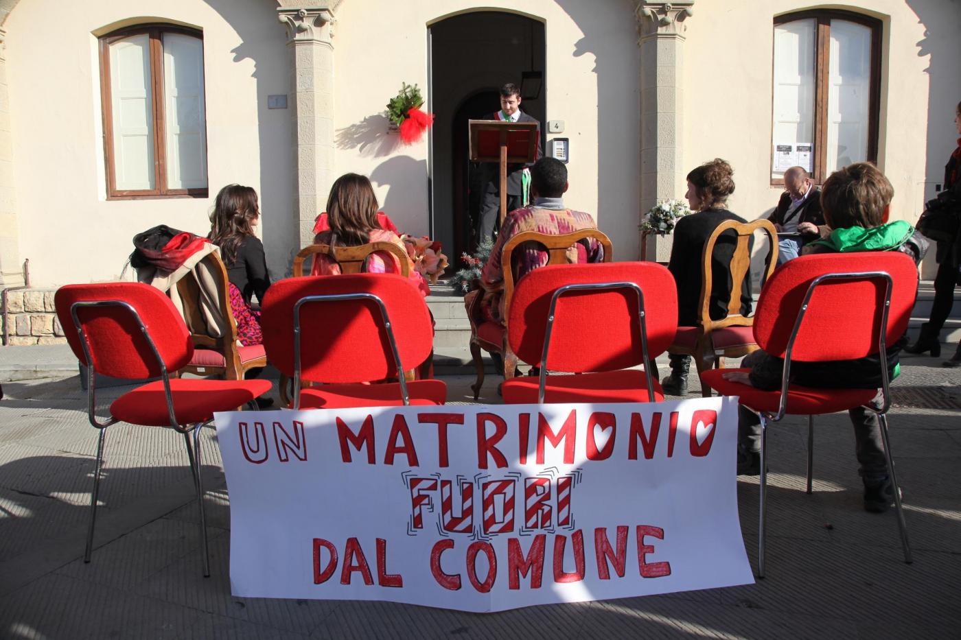 TAVARNELLE (FIRENZE) – Il comune è inagibile a causa dello sciame sismico che da giorni colpisce la valle del Chianti in Toscana, e gli sposi decidono di sposarsi all’aperto, fuori dall’edificio del comune. E’ accaduto nel fine settimana a Tavarnelle in alta Valtiberina.