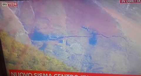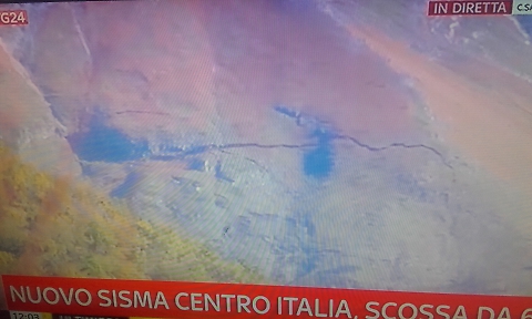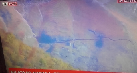 Le telecamere di SkyTg24, in mattinata avevano ripreso la fiancata del Monte Porche con una impressionante fenditura, una spaccatura dovuta alla scossa di terremoto delle 7.40 del 30 ottobre 2016. Le immagini in questo caso erano state girate a Castlsantangelo sul Nera, a pochissimi chilometri dall’epicentro del nuovo sisma, situato vicino Norcia.