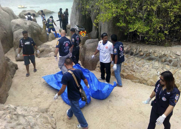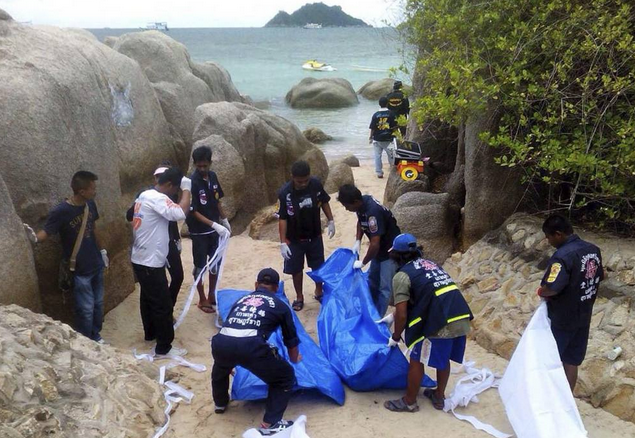 I cadaveri dei due giovani – una coppia arrivata in Thailandia il 25 agosto – sono stati trovati seminudi vicino a una scogliera sulla spiaggia di Sairi, con il volto sfigurato dai colpi di un oggetto contundente. Poco lontano è stata ritrovata una zappa macchiata di sangue, che si crede sia stata usata dall’omicida. La polizia sta cercando un terzo turista britannico, di cui si sono perse le tracce lunedì mattina.