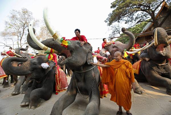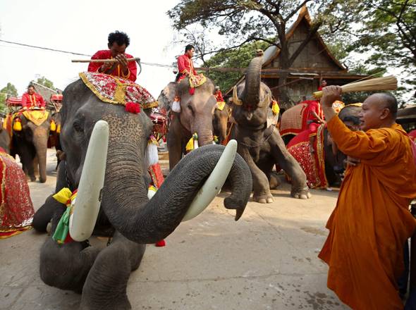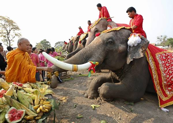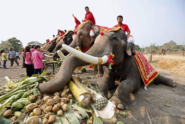 Nel paese asiatico, si è svolta la Giornata Nazionale a loro dedicata nella città storica di Ayutthaya. Gli elefanti hanno potuto banchettare senza limiti mangiando frutta e verdura.