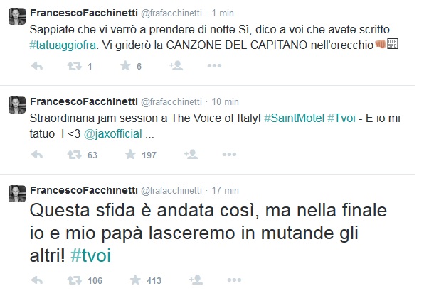“Straordinaria jam session a The Voice of Italy! #SaintMotel #Tvoi – E io mi tatuo I <3 @jaxofficial …”