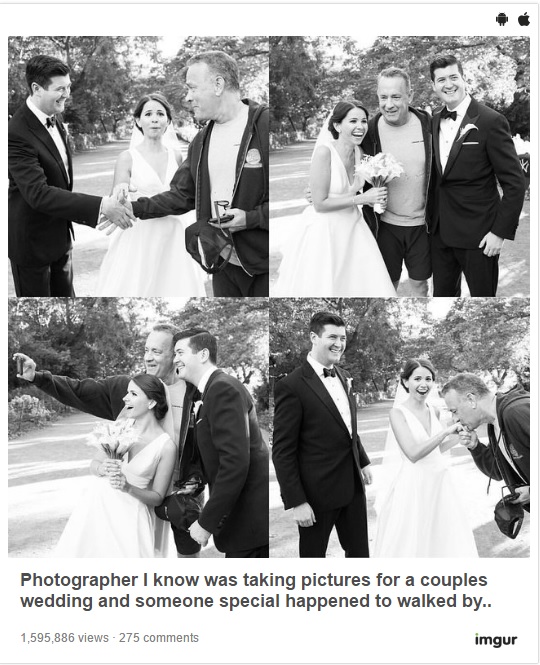 Dopo il selfie l’attore è stato invitato dagli sposi a partecipare al rinfresco per il matrimonio. Il protagonista ha però rifiutato a causa di impegni lavorativi. Prima di andarsene però, ha scattato altre foto con loro.