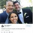 Tom Hanks ha notato la coppia e si è avvicinato . Raggiunti gli sposi ha detto semplicemente: “Ciao”. A questo punto ha preso il suo smartphone ed ha scattato un selfieche ha poi condiviso su Twitter.