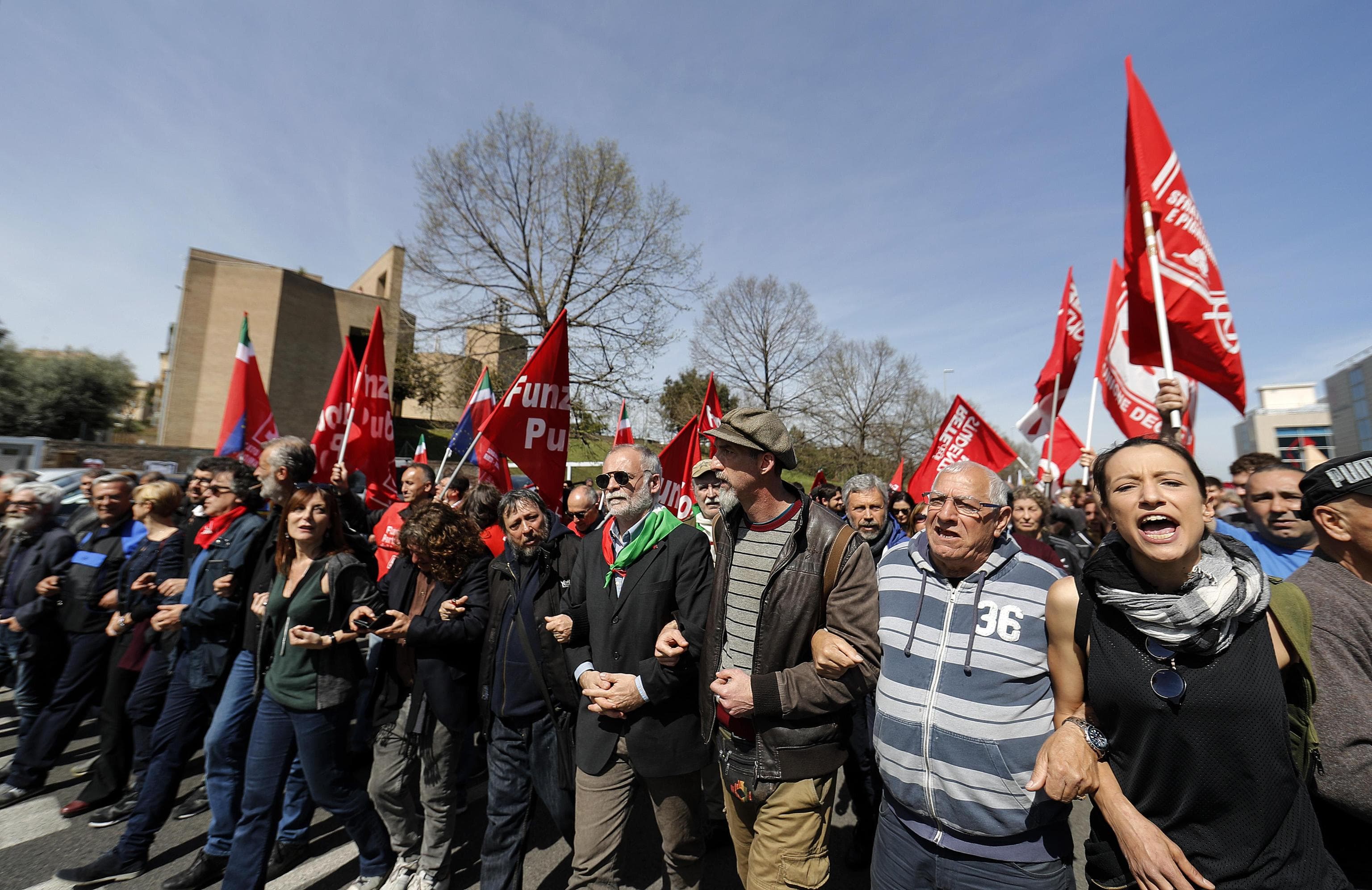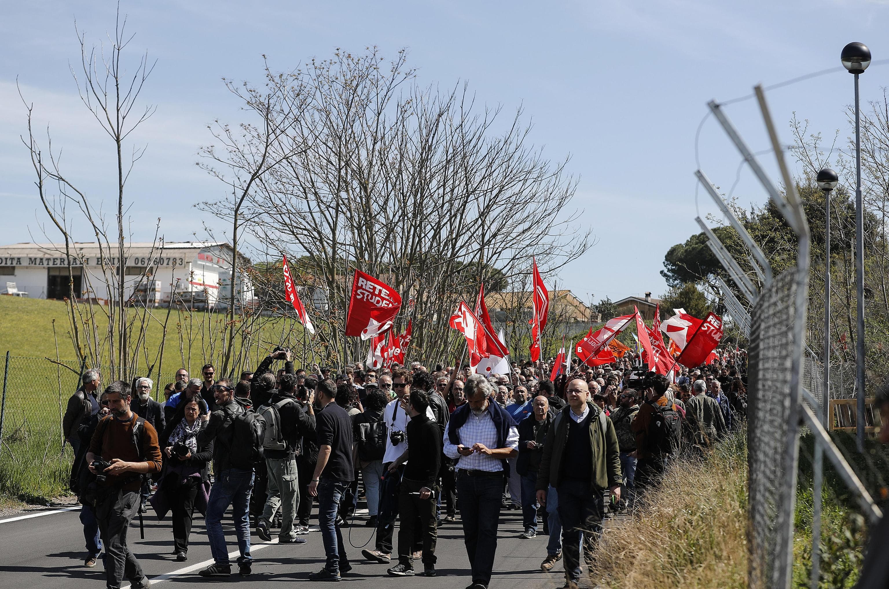 Tra i cori intonati durante la manifestazione: “il centro di accoglienza in Campidoglio”.