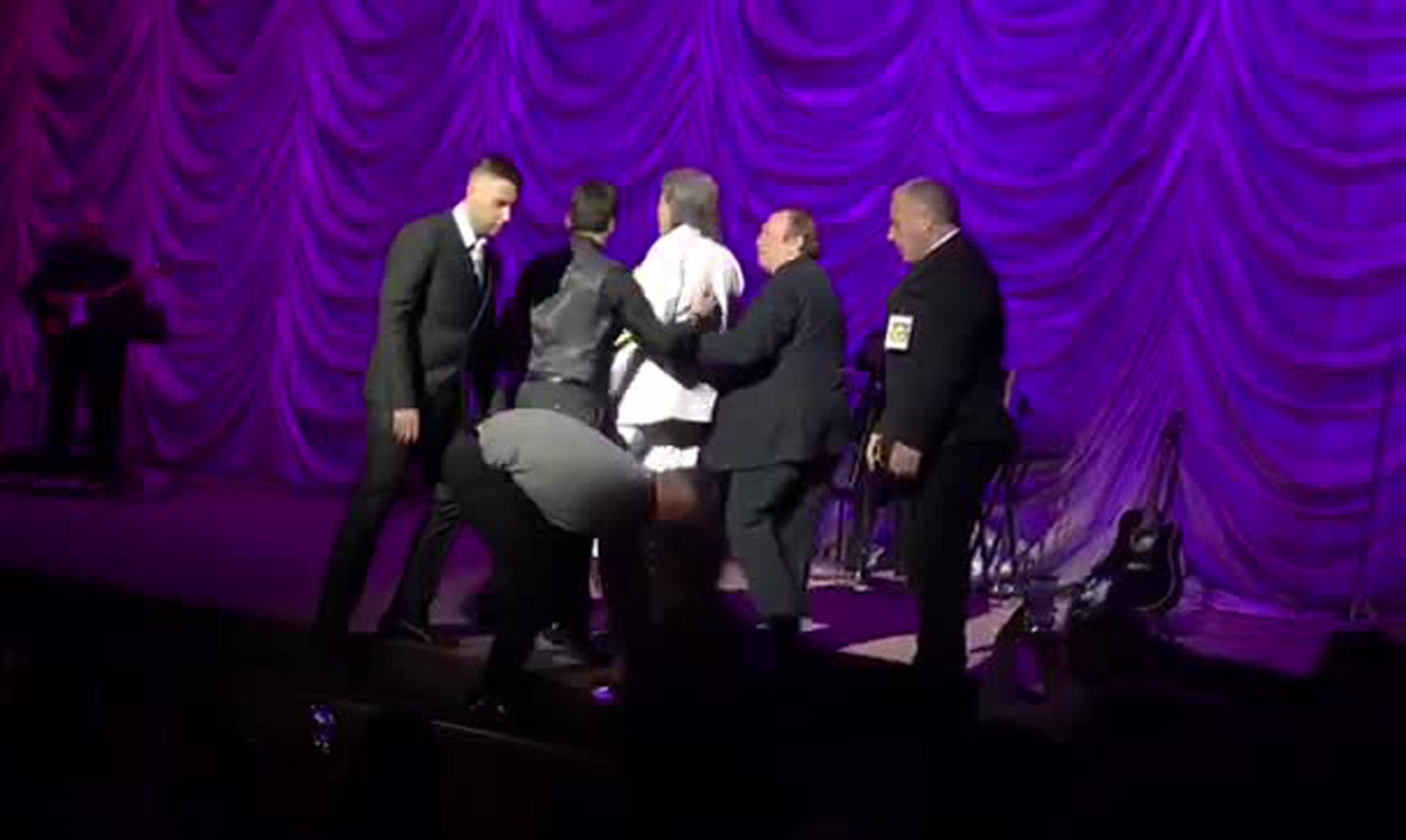 Come mostrano le immagini diffuse dallo staff del cantante, è immediatamente intervenuta la sicurezza che ha spintonato l’uomo fuori dal palco, mentre lo stesso Toto Cutugno chiedeva di lasciarlo andare dopo essersi reso conto che non costituiva una minaccia. Cutugno gli stringe nche la mano.
