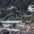 Restano ancora in bilico sulla massicciata ferroviaria il locomotore E444 e il primo vagone che erano deragliati dopo aver urtato contro la frana di Capo Rollo. Questi due saranno rimossi dalla chiatta sulla quale verranno montate le gru della Vernazza.