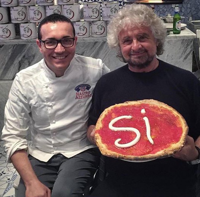 Il consigliere regionale Francesco Borrelli racconta che “dopo averla fatta per i Verdi, Gino Sorbillo ha preparato la pizza per il Sì anche per Beppe Grillo che è andato a mangiare nella storica pizzeria napoletana, un’ulteriore testimonianza che la battaglia per il voto e per il Sì al referendum di domenica prossima non ha colori politici ma è animata solo dall’amore per il mare”.