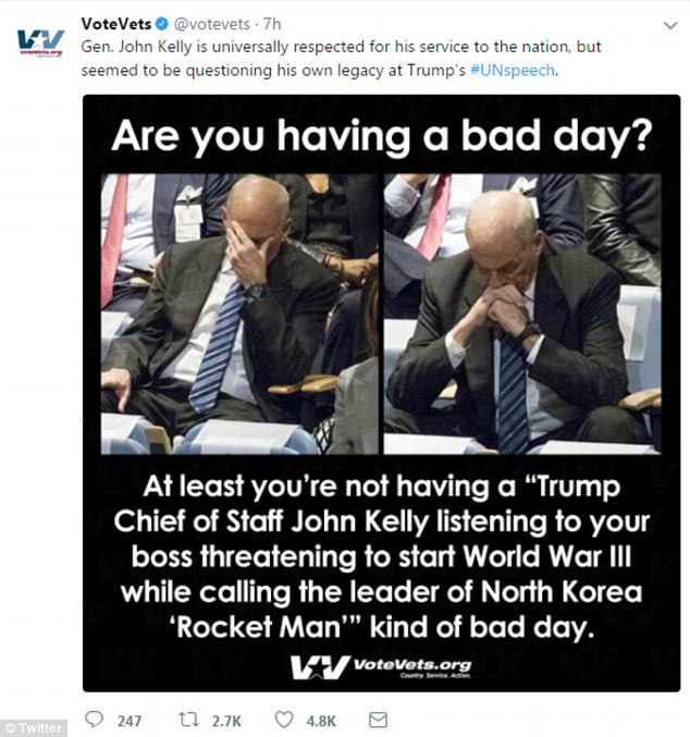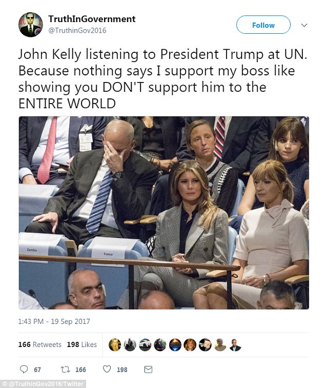 Sta di fatto che le foto che lo immortalano sono finite in Rete e hanno scatenato commenti e ironie. Qualcuno anche sostiene (ironicamente) che Kelly abbia avuto una “crisi esistenziale” durante il discorso di Trump, altri lo paragonano a serie televisive. E su Twitter, come mostrano le immagini del Daily Mail, arriva l’asthag “we are all Johnny Kelly” (“siamo tutti John Kelly” ndr).