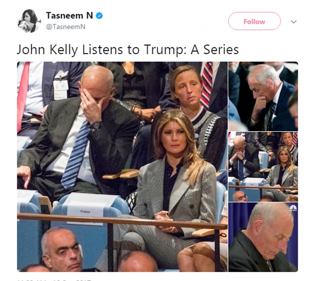 EW YORK – Mano sul viso a coprire gli occhi. Donald Trump parla alle Nazioni Unite e questa è la reazione del capo di gabinetto americano John Kelly alle parole del suo presidente. Il linguaggio del corpo parla e ci consegna un kelly non esattamente soddisfatto, a giudicare dalle sue espressioni. Anzi, disperato secondo alcuni.