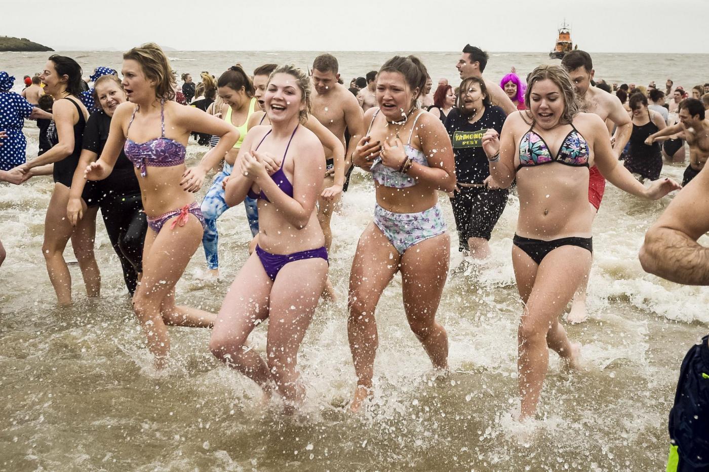 “Al suono della sirena, a mezzogiorno esatto, tutti in acqua tra urla scaramantiche e spruzzi di schiuma di un mare a 14 gradi di temperatura. Per la maggior parte dei partecipanti il “bagno” è durato pochi secondi, giusto il tempo per dimostrare il dovuto coraggio e richiamare la buona sorte per il nuovo anno. A riva, inevitabile ricorso a enormi asciugamani, accappatoi, berretti, coperte e fiumi di bevande calde”.