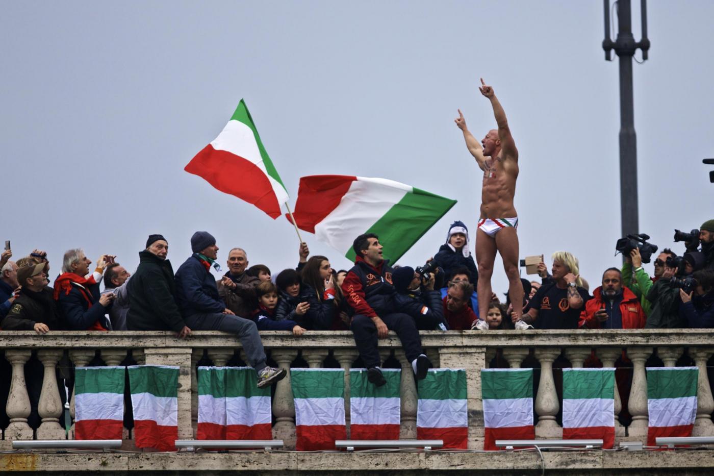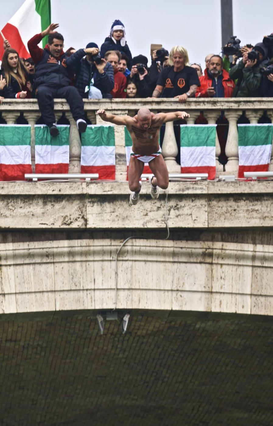 A Roma il consueto tuffo nel Tevere ha avuto come protagonista Maurizio Palmulli, bagnino di Ostia di 63 anni che da 28 ormai non manca questo appuntamento. Con lui anche Marco Fois e Simone Carabella, due esperti tuffatori.