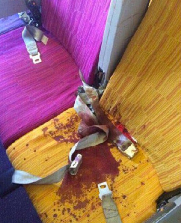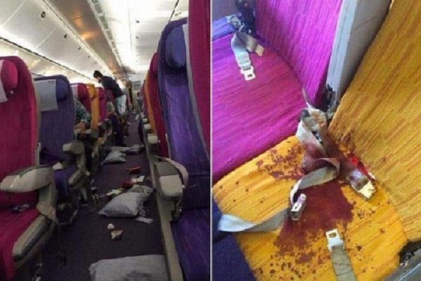 A rendere bene l’idea di quello che hanno dovuto passare sono le foto scattate da alcuni di quelli rimasti illesi: il corridoio del velivolo sembra un campo di battaglia, con oggetti a terra e disordine. Alcuni sedili sono invece macchiati di sangue: a ferirsi è stato un passeggero che, durante un vuoto d’aria, è stato sbalzato verso il soffitto ed ha colpito con la testa un oggetto metallico procurandosi una profonda lacerazione.