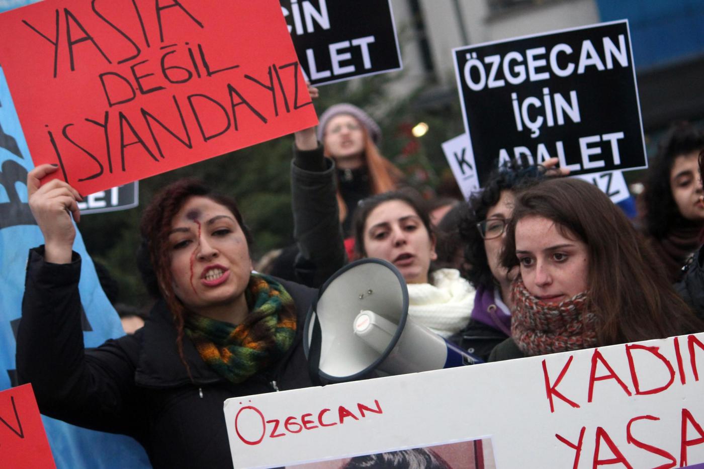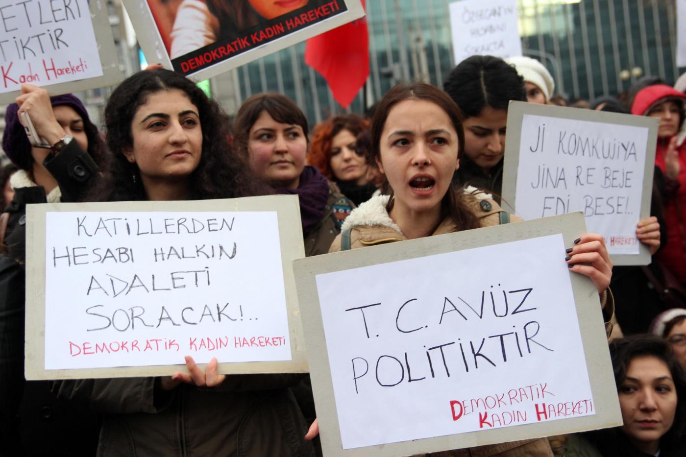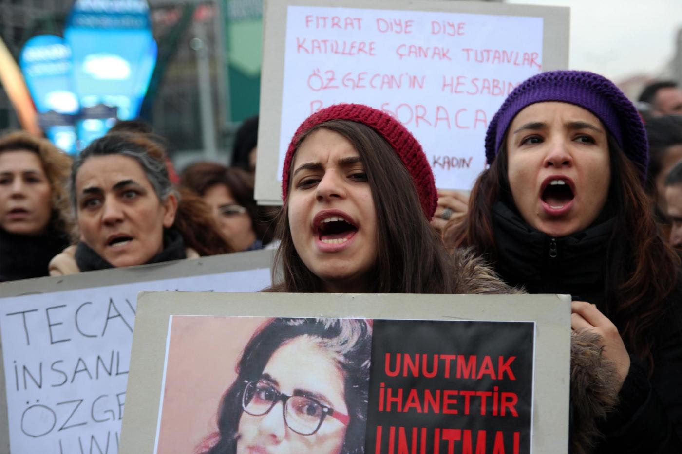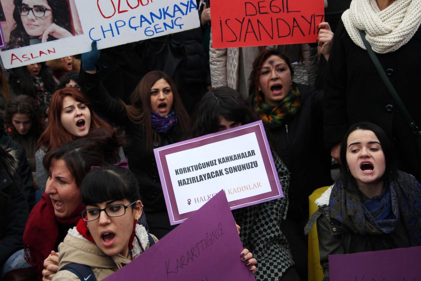 Il timore dei manifestanti è sulla laicità dello Stato e sul futuro della Repubblica turca. La protesta è scattata dopo l’omicidio della giovane studentessa Özgecan Aslan . Le manifestanti hanno innalzato fotografie della ragazza e di altre vittime di violenze sessuali: “I politici dovrebbero condannare queste uccisioni e aumentare le pene per i colpevoli” hanno detto le manifestanti (foto LaPresse)