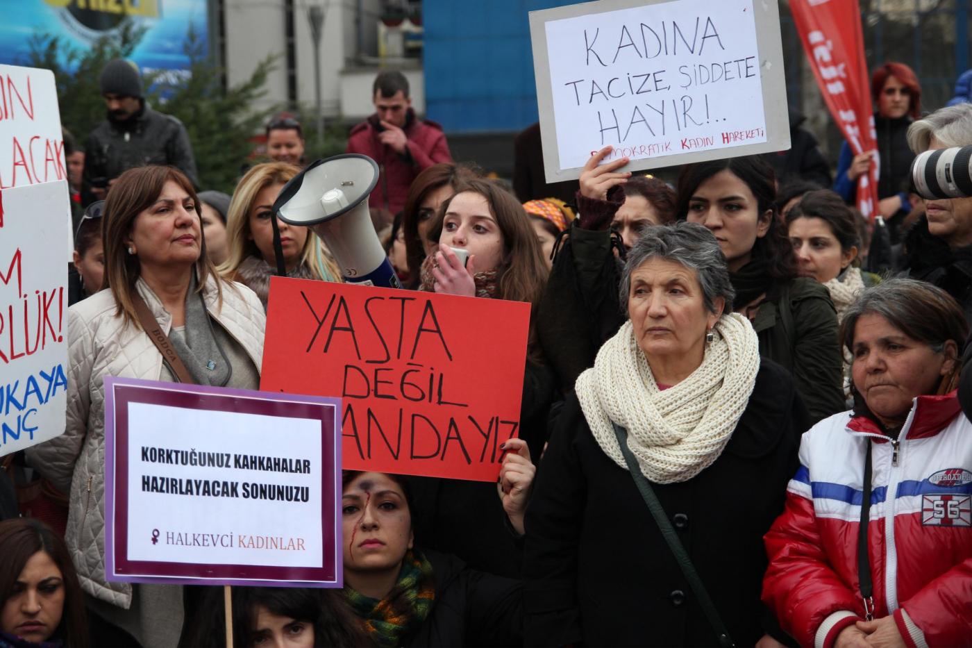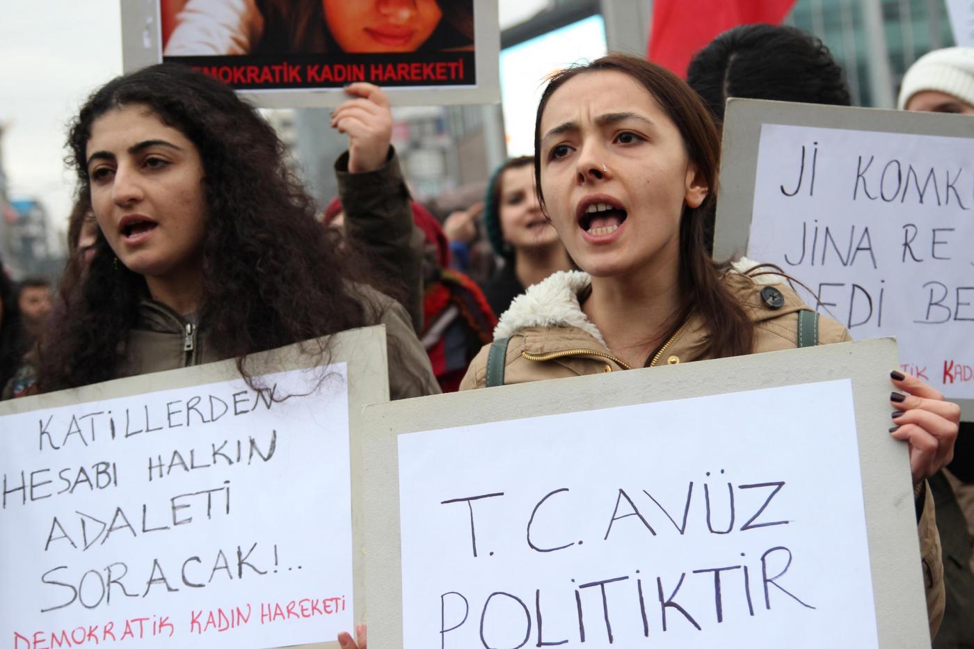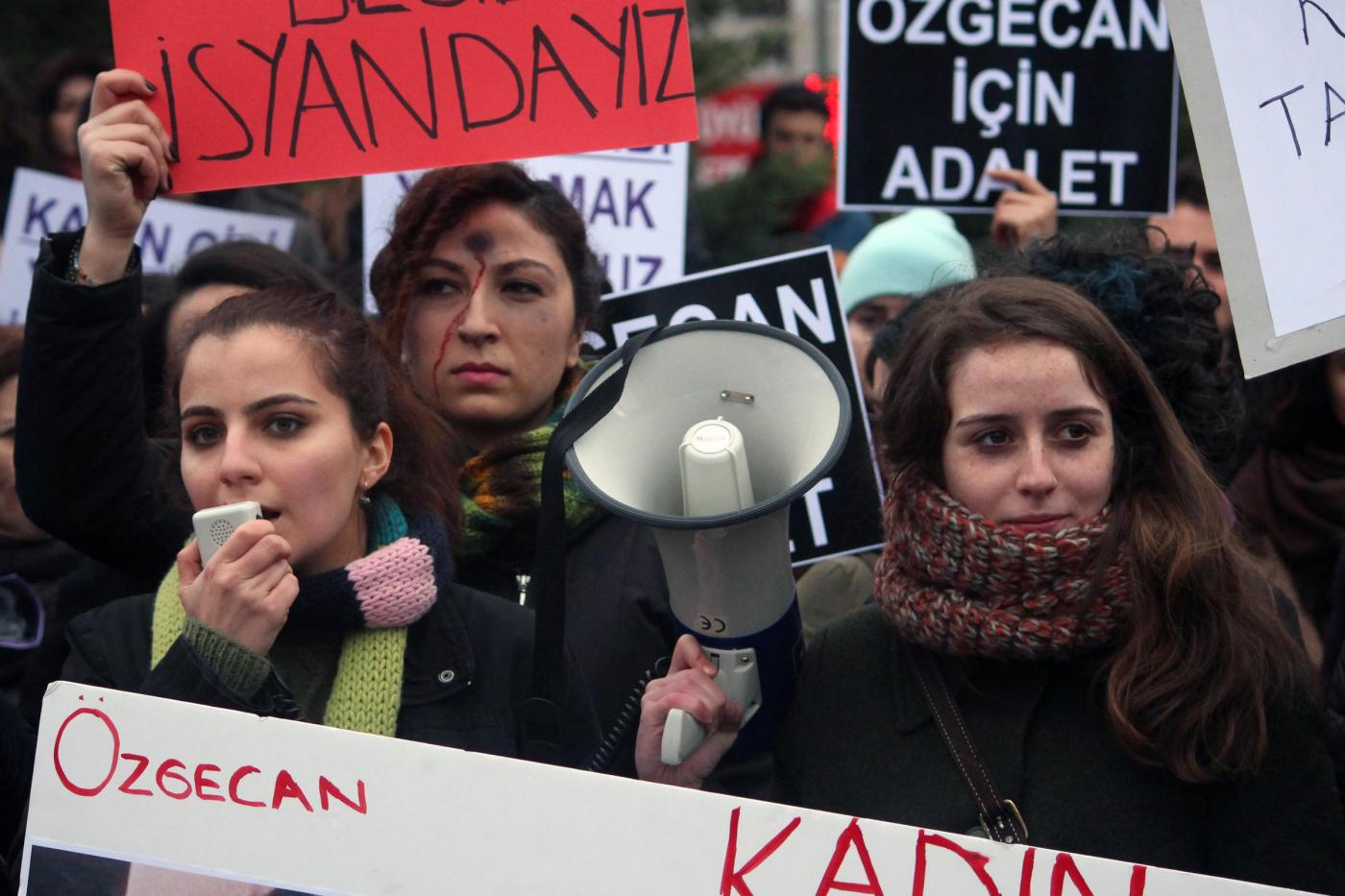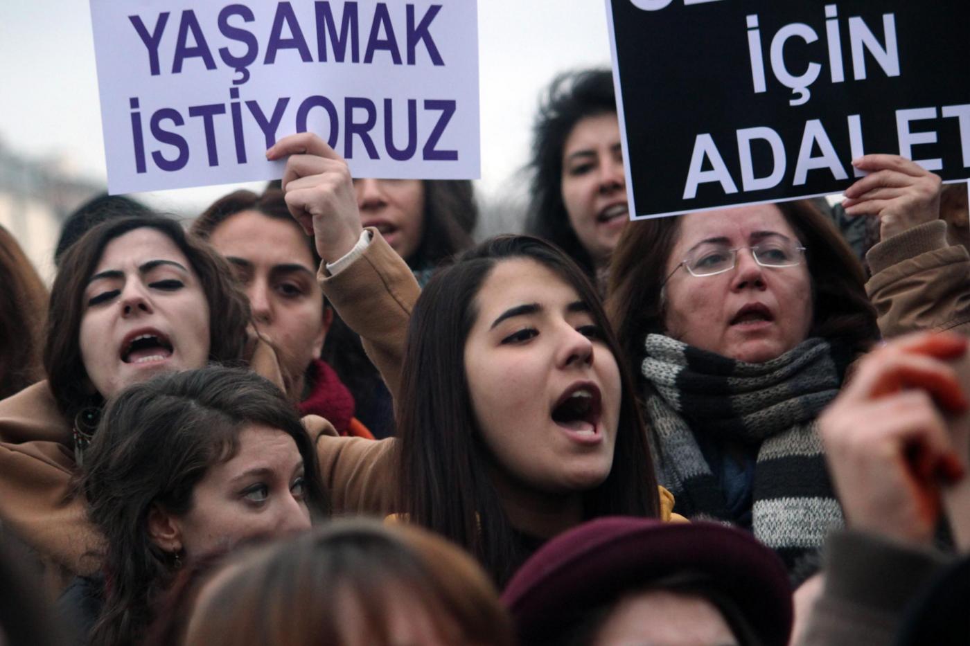 Il timore dei manifestanti è sulla laicità dello Stato e sul futuro della Repubblica turca. La protesta è scattata dopo l’omicidio della giovane studentessa Özgecan Aslan . Le manifestanti hanno innalzato fotografie della ragazza e di altre vittime di violenze sessuali: “I politici dovrebbero condannare queste uccisioni e aumentare le pene per i colpevoli” hanno detto le manifestanti (foto LaPresse)