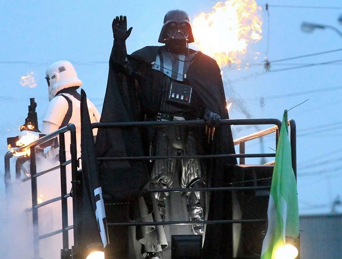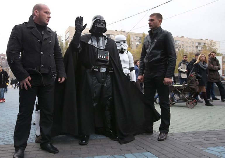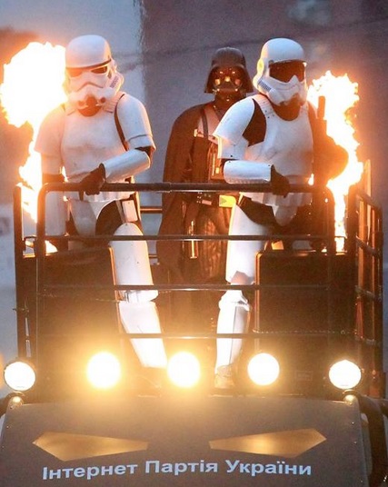 KIEV – Darth Vader di Guerre Stellari si candida per il parlamento ucraino. Dopo Odessa, anche Kiev ha il suo politico che va in giro travestito come il cattivo della saga cinematografica di George Lucas. In questo caso, però, non si tratta solo di abbigliamento. Lui e altri membri del Partito di Internet si sono fatti cambiare i nomi di battesimo per prendere quelli dei personaggi di Star Wars: da Dart Vener a Yoda, da Chewbecca a Palpatine.